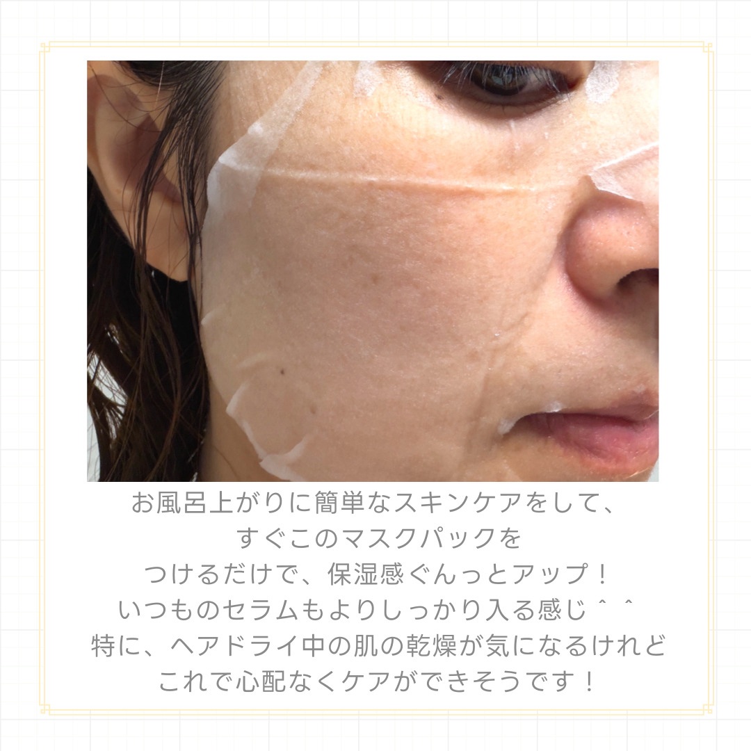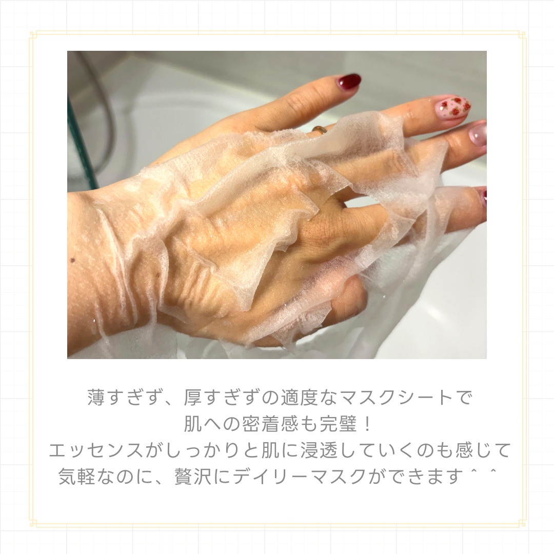 | 厚すぎず薄すぎない肌あたりのいいシートマスク。パック後はたっぷり保湿されてる感じでうるツヤすごかった✨ | 詳細を見る |