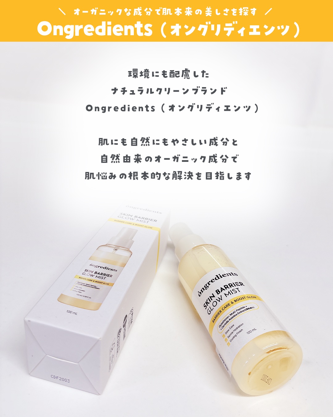 商品詳細情報Ongredients オングリディエンツ スキンバリアグローミスト