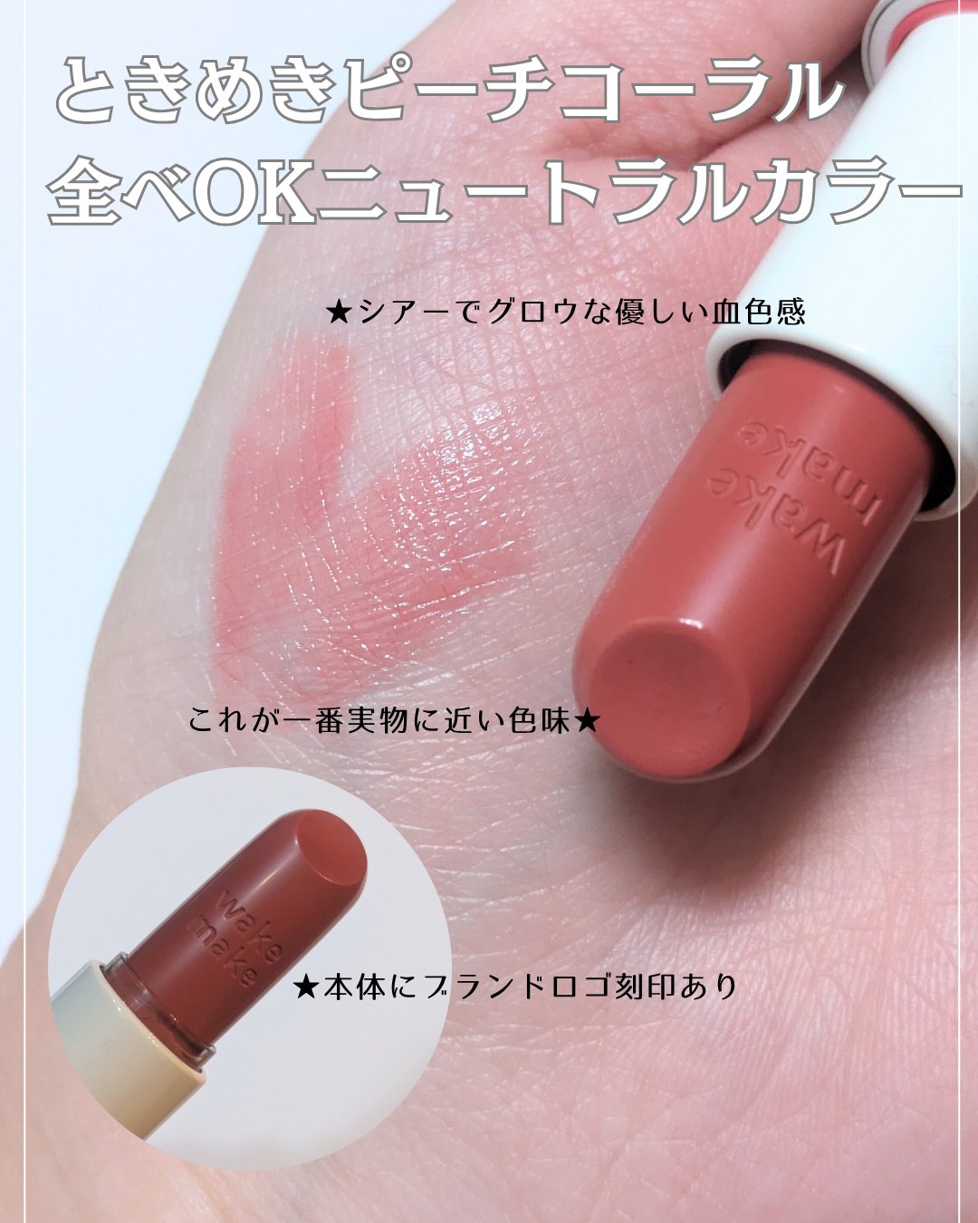 塗り心地 良くも悪くも口紅塗ってますよ感はあり🙆♀️ ひと塗りでシアーな薄づき感を楽しんでもいいし フルリップゴリ塗りでツヤツヤポッテリさせることも出来るけど 塗り重ねるとちょっと重たくなるかも…🤔💭 コスパ 色持ち、発色、塗り心地 トータルで見てこれ以上のコスパ最強のリップはないかも 660円だよ?フラペチーノと同じ値段かそれより安い💰 色が可愛い! ほんとにこの値段でいいのかという発色 特に新色06はめちゃくちゃ可愛いローズミルクティーカラーで ミルクティーが好きすぎて憧れのあったわたし的には 本当にありがたいミルクティーカラー☕️