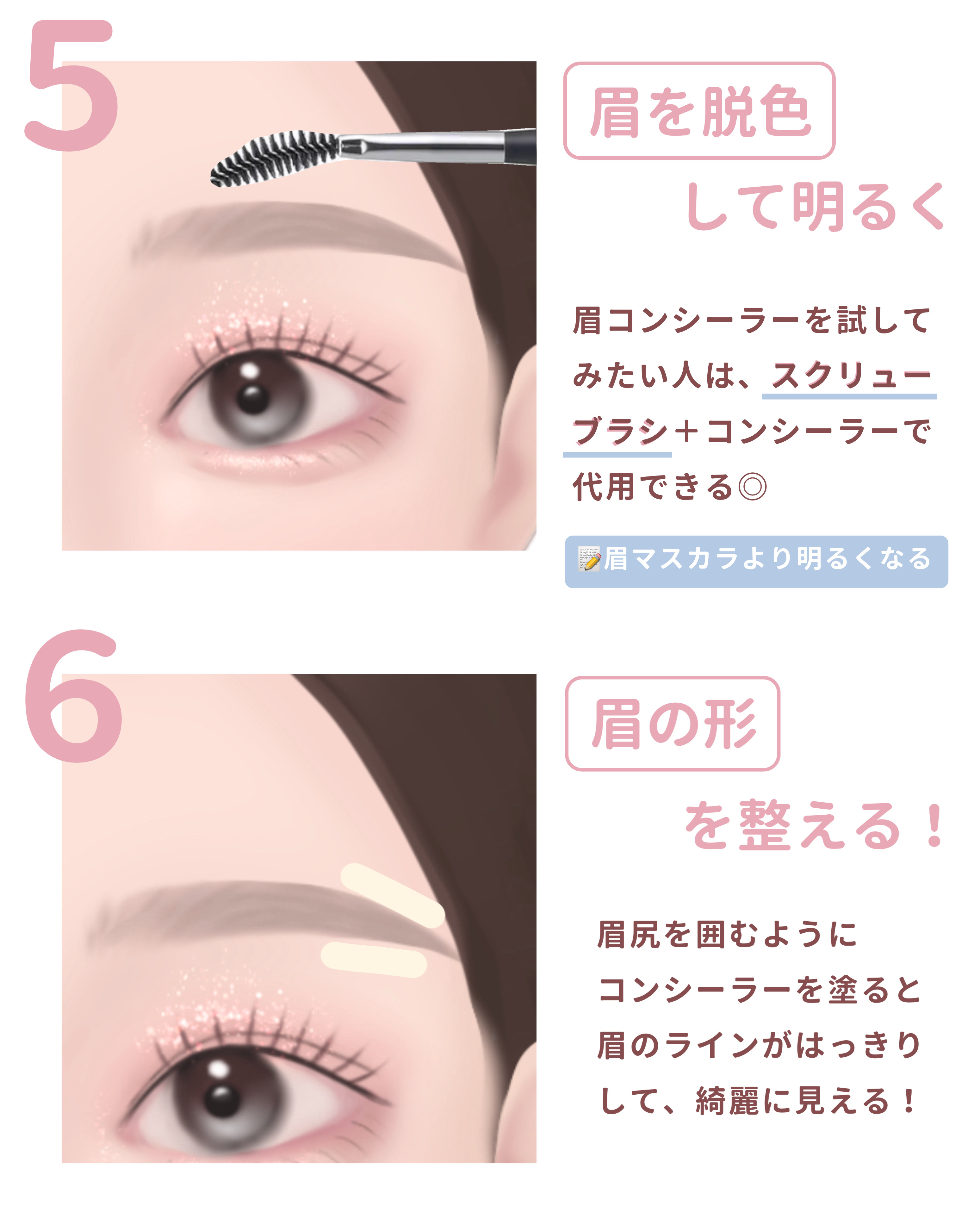 ・涙袋の影の部分まで、ベースを塗ることで縦幅がかなり強調されて丸目にみえる! ・アイシャドウの陰影とラメのハイライト効果で奥まった目に光を取り込んで出目っぽくみせる! ・淡いピンクのアイシャドウ、艶のようなラメ、細くて短いブラックアイラインが特徴 ・つり目を自然にいかせて、美人な雰囲気になれる! ・単色メイクは簡単そうに見えて難しいけど、ブラシを使うと綺麗なグラデーションになる! ・目の形によって中間色をどこまで入れるか変わるけど「目を開けた時に5mm見える」を基準にする