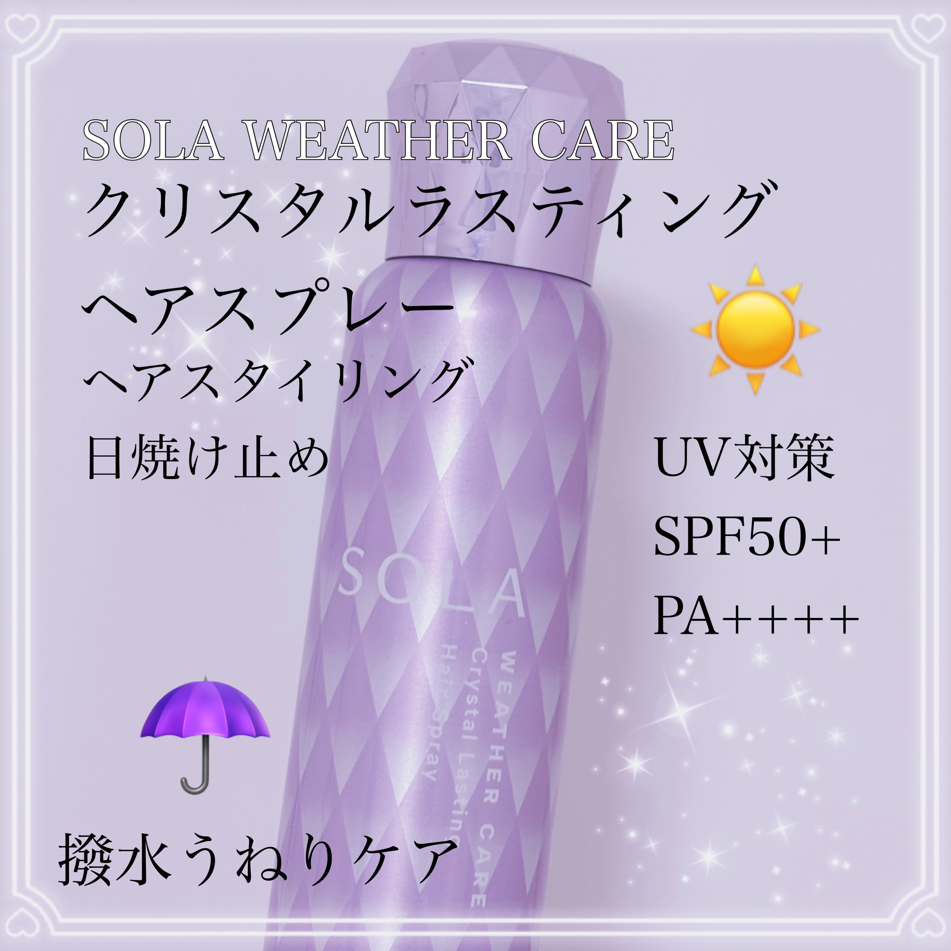 - SPF50+ã»PA++++* ã©ããªå€©æ°ã®æ¥ã§ããèŒãæŽããã€é«ªãžã SOLA WEATHER CAREã¯å€©åã«ããé«ªã®æ©ã¿ã«çç®ããç¬èªã®ãŠã§ã¶ãŒã±ã¢åŠæ¹ã§å€éšãã¡ãŒãžãã髪ãå®ããæŽããã€é«ªãç®æãéçºãããããŸããã ã©ããªå€©æ°ã®æ¥ã§ããããããã€é«ªãžãå šå€©ååã®ãŠã§ã¶ãŒã±ã¢ãã©ã³ããèªçããŸããã ãã¢ã¹ãã¬ãŒïŒã¯ãªã¹ã¿ã«ããªãŒãžã¢ã®éŠã * 髪ãžã®å¹æã瀺ããã®ã§ã¯ãããŸãã