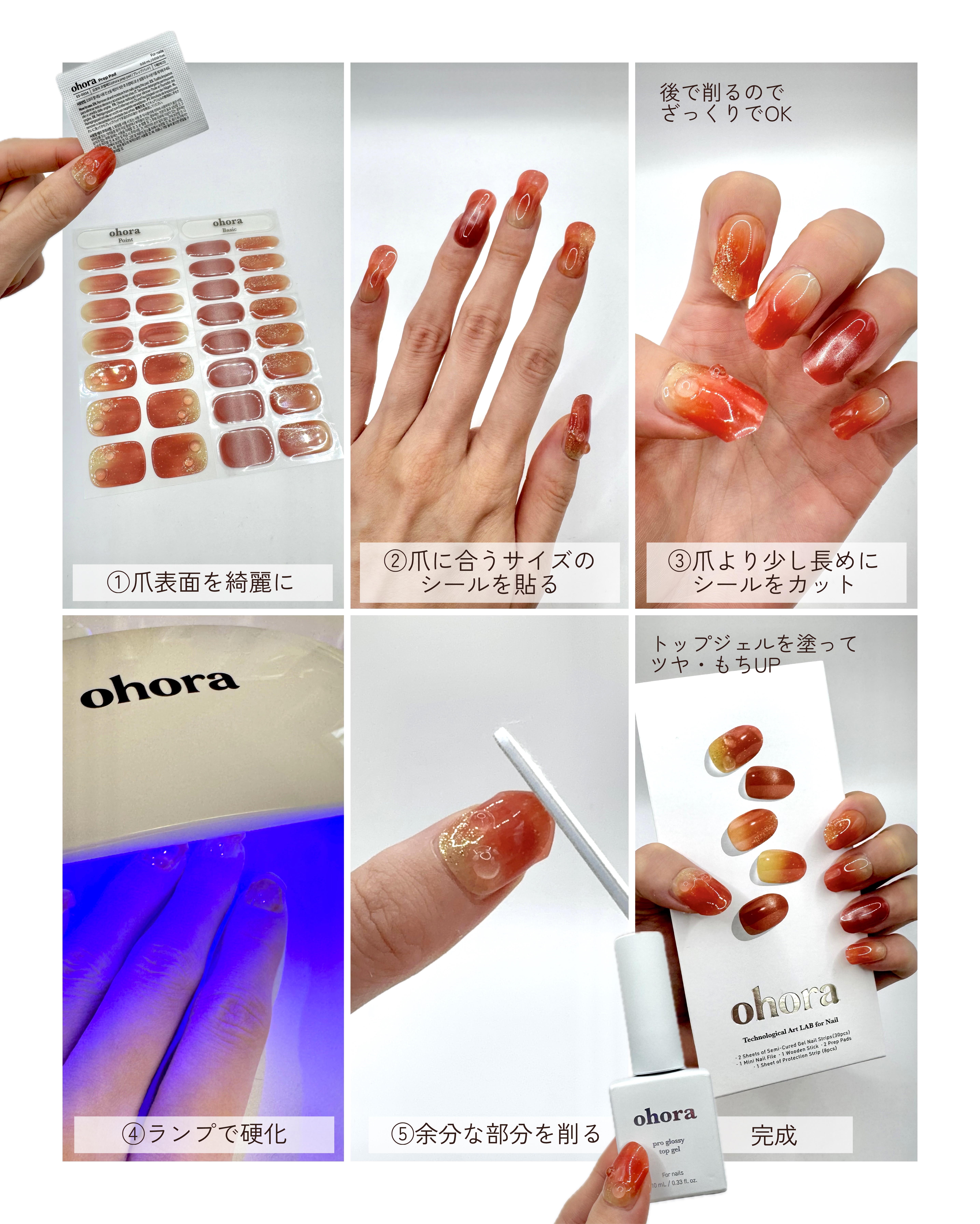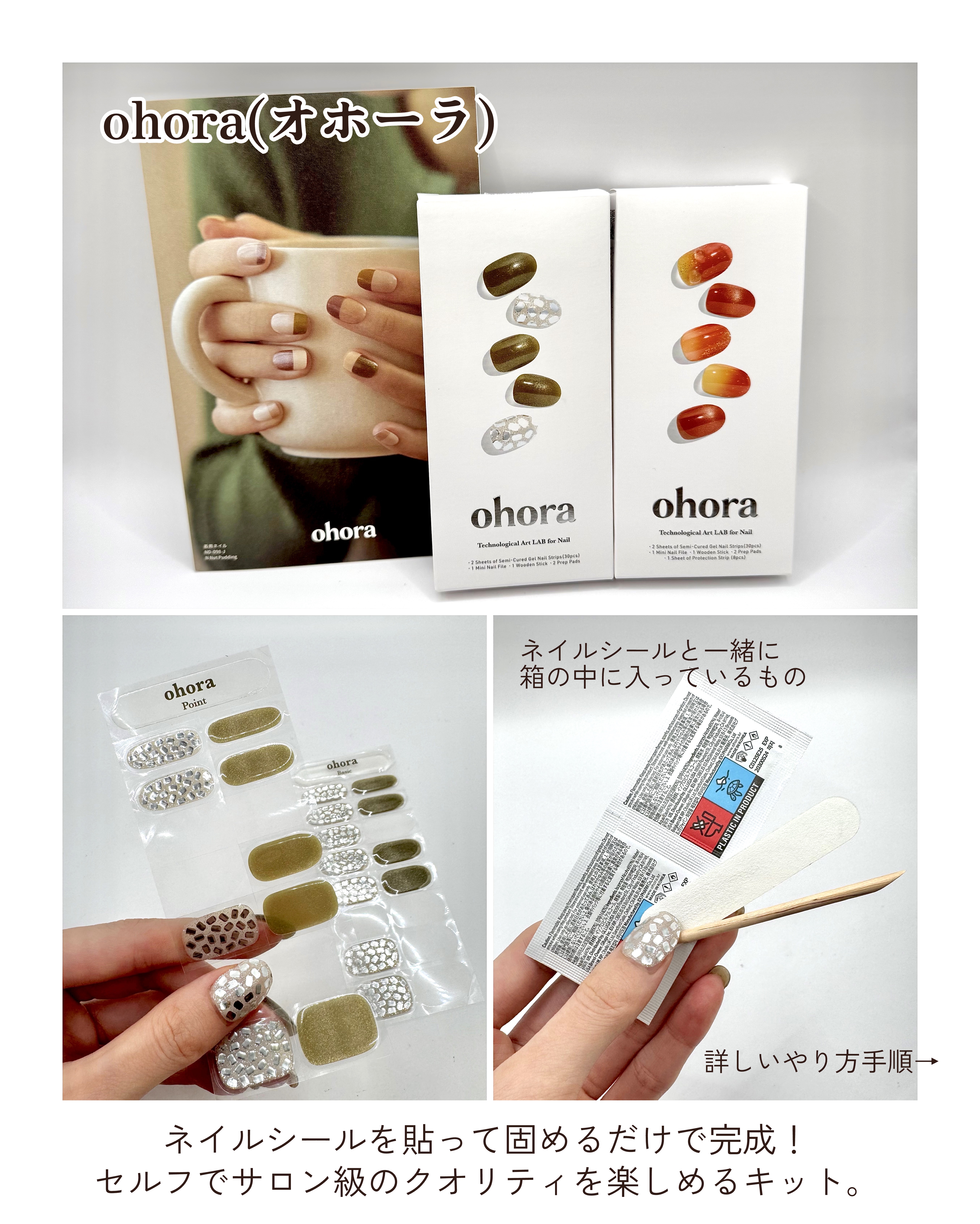◽️◽️◽️貼って固めるだけでサロン級のお洒落ネイルが完成🤍ohora(オホーラ)【セルフジェルネイルシールキット】ネイルサロンに通いたいけれどお金も時間ももったいない…セルフネイルしても 家事で水仕事するとすぐにはげてきちゃう😮💨ohor...