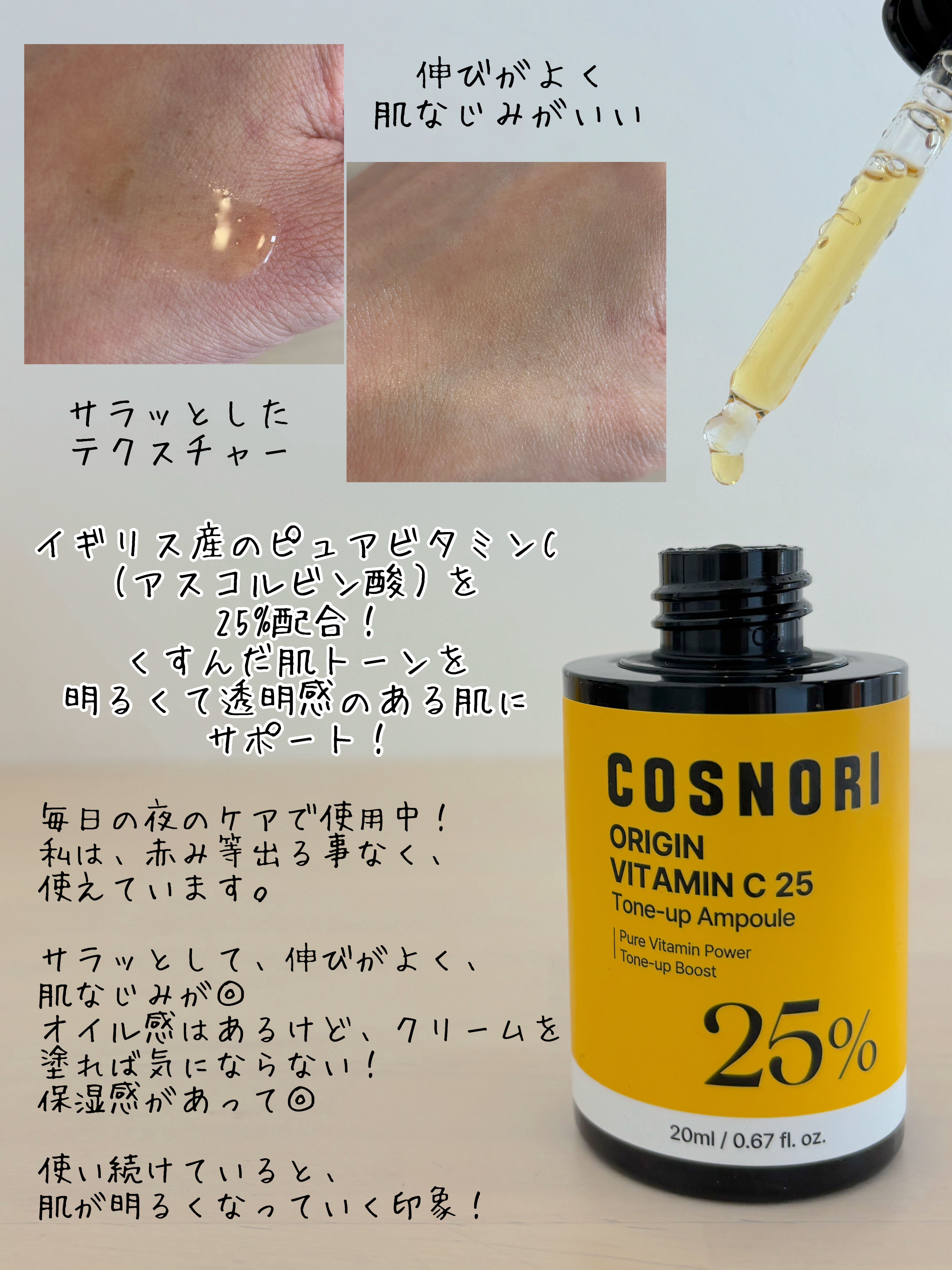 レビュアーキャンペーンに当選してCOSNORIさまからいただきました。COSNORIオリジンビタミンC25美容液✂イギリス産ピュアビタミンC(アスコルビン酸)を25%高配合。2週間使ってみて→くすみが減り、透明感が出てきた。✼••┈┈••✼•...