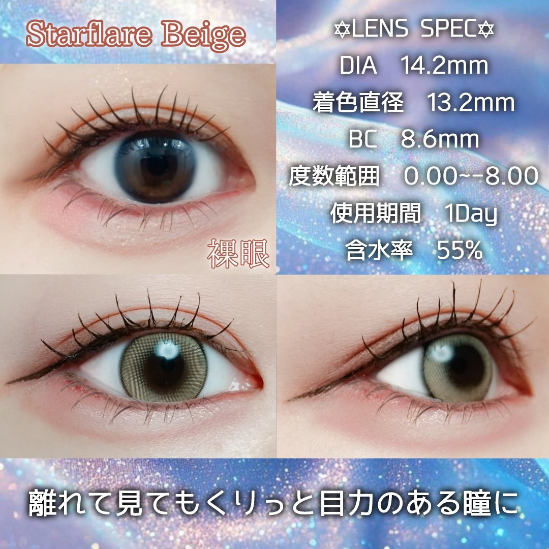 - ガラス玉に閉じ込めた無数のきらめきが、あなたの瞳で自信に変わる。 回っても、ずれても、輝きが続く”ガラス玉レンズ”。 <アイコニックグレー > 水面に揺れる光のようなきらめきで印象的な瞳を叶えます。 瞳の輪郭を優しく縁取る太フチに、象徴的な半月ハイライトが瞳に上品な立体感を与えます。 <アイコニックブラウン > 水面に揺れる光のようなきらめきで印象的な瞳を叶えます。 瞳の輪郭を優しく縁取る太フチに、象徴的な半月ハイライトが瞳に上品な立体感を与えます。 <スターフレアグレー > 降り注ぐ星屑のようなハイライトデザインが、ドラマティックな輝きを与えます。 視線を奪うくっきりとした細フチに、繊細に重なり合うハイライトが主役級の輝きをプラスします。 <スターフレアベージュ > 降り注ぐ星屑のようなハイライトデザインが、ドラマティックな輝きを与えます。 視線を奪うくっきりとした細フチに、繊細に重なり合うハイライトが主役級の輝きをプラスします。 <デイグローグレー> 光をふわりと滲ませるグローカラーが、瞳にヘルシーな艶を仕込みます。 ナチュラルに滲むようなぼかしフチでくりっとした立体感を演出し、内側のグロウカラーが、瞳に光沢感をプラスします。 <デイグローブラウン > 光をふわりと滲ませるグローカラーが、瞳にヘルシーな艶を仕込みます。 ナチュラルに滲むようなぼかしフチでくりっとした立体感を演出し、内側のグロウカラーが、瞳に光沢感をプラスします。 カラーコンタクトレンズの不適正使用による眼障害の危険性等などがあります。 ●コンタクトレンズは高度管理医療機器です。不十分な洗浄・消毒など不適切なケアや、長時間・交換期間を超えた装用により、アレルギー性結膜炎、角膜感染症、角膜潰瘍等の重篤な眼障害が発生する危険性があります ●ご使用前に取扱説明書を確認してください 使用上の留意事項 ●眼科医院等を受診してからお求めください ●眼に異常を感じたら直ちにレンズ使用を中止し、お近くの眼科等で診察を受けてください ●医師の指示にしたがってご使用ください ●コンタクトレンズを装用する場合、自覚症状がなくても、眼科医院等での定期検査を受けてください ●レンズに不具合がある場合は使用しないでください