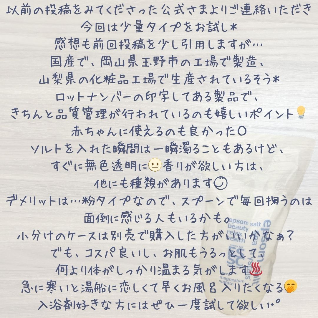 | しっとりなめらかなお肌になるしとっても気に入ったバスソルト🛀 | 詳細を見る | ||