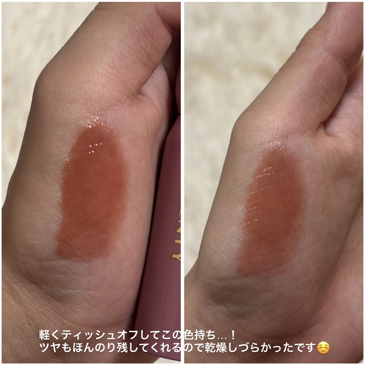 | 乾燥しにくく、艶感をキープしてくれて、ティント特有の色持ちも良く、ぷるっとしたジューシーな唇に仕上がります | 詳細を見る | |
