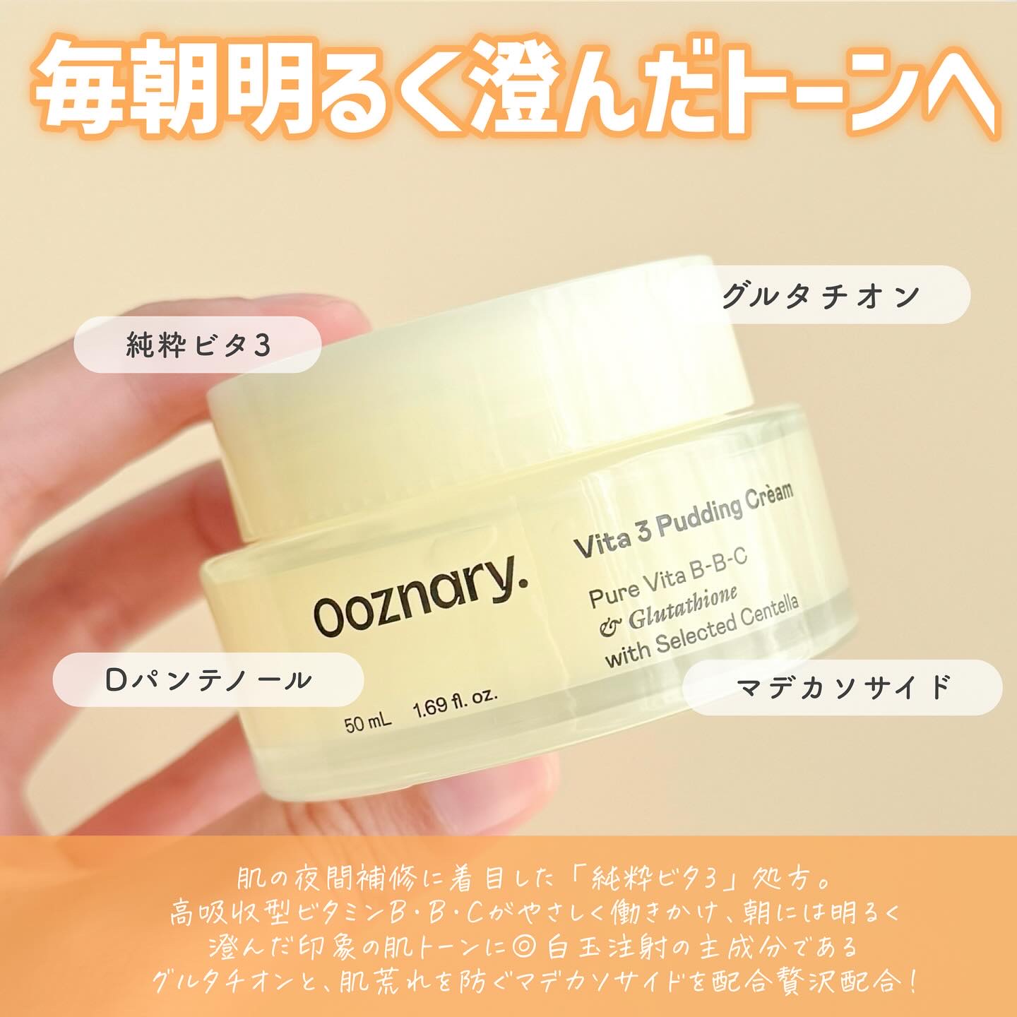 Ooznaryビタ3セラム敏感肌にも使いやすいオーズナリーだけのビタミン3種リール1千万回以上再生された話題のセラムビタミン3種+グルタチオン+マデカソサイドシナジー配合で透き通ったお肌へビタ3プリンクリーム・吸収率の高いビタミンが、キメを整...