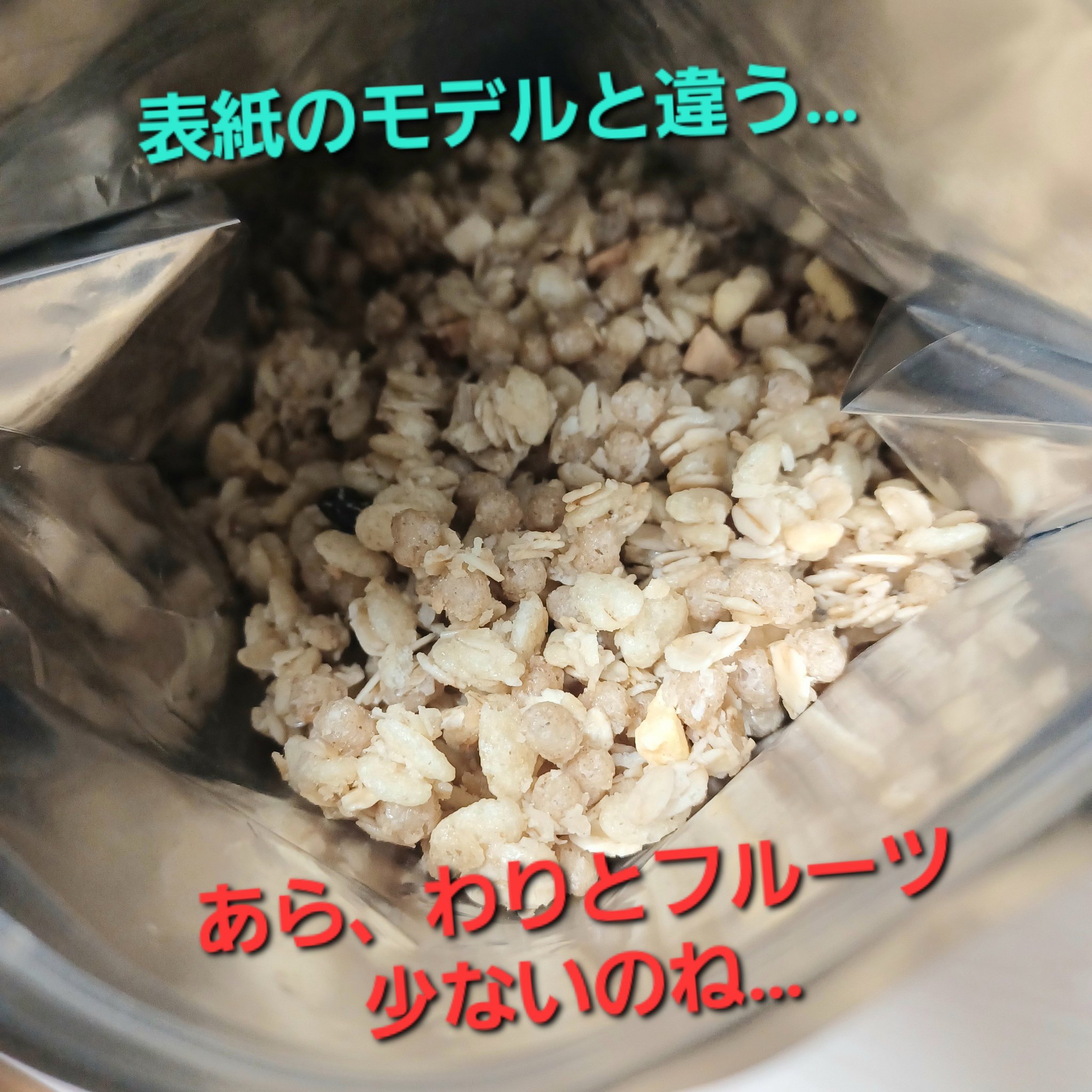 MJさん、こんにちは☀️ もう名前から秋の絶対美味しいグラノーラ🥹🍠🍎 フルーツ少ないんですね😳! 物価高騰の影響がここにも出てるんですかね😭 確かに表紙見て中見たら残念って思っちゃいますね😭