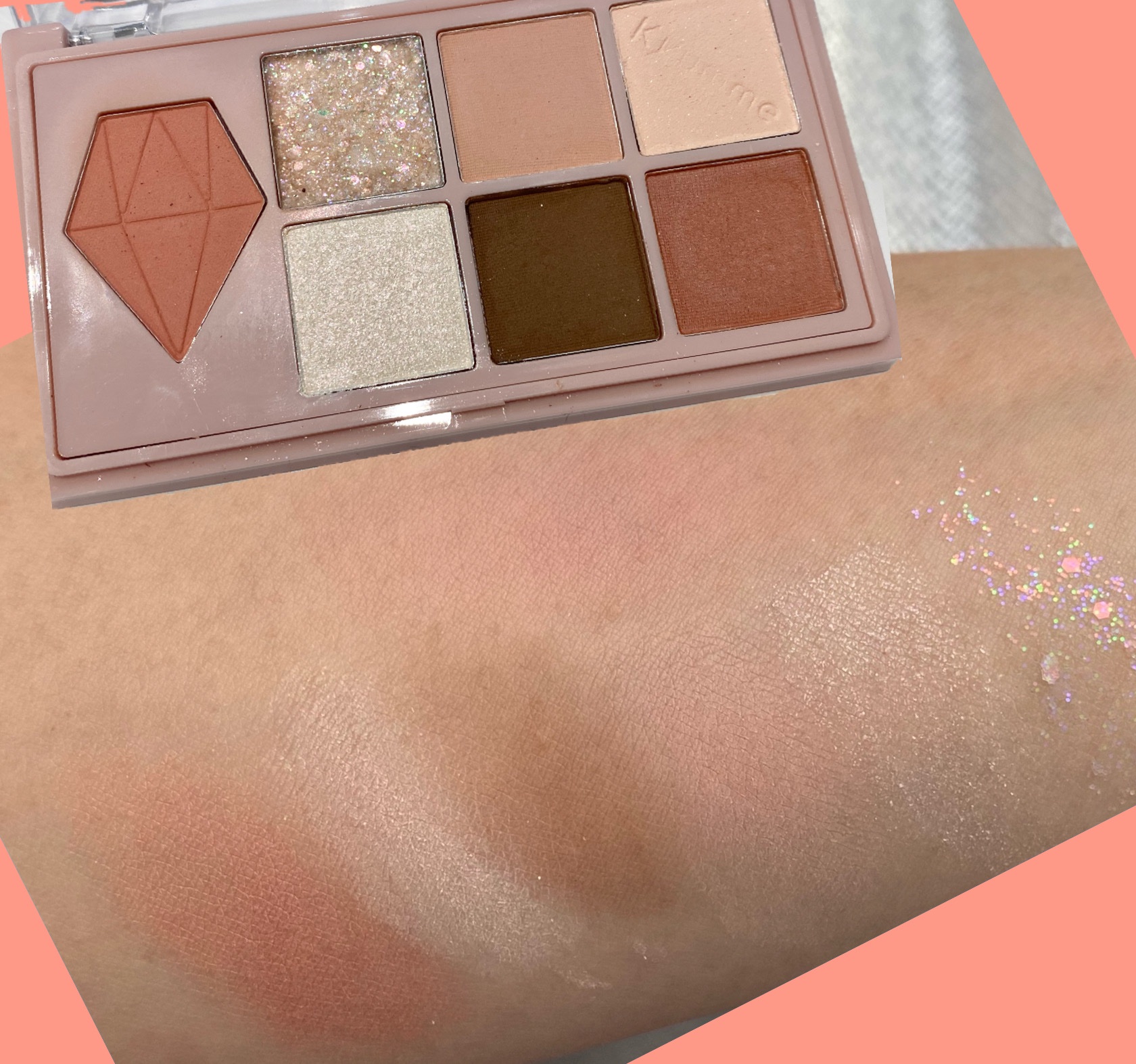 マット部分や締め色の部分は全く変化がわからなかったけど左側2段のキュンミーが柔らかくなってた!! 発色や色持ちなのかと思ったら、単純にテクスチャーが柔らかくなるだけでした👀 UR GLAMのマルチパーパスパレット持ってる人はわざわざキュンミーの買わなくていいかも〜
