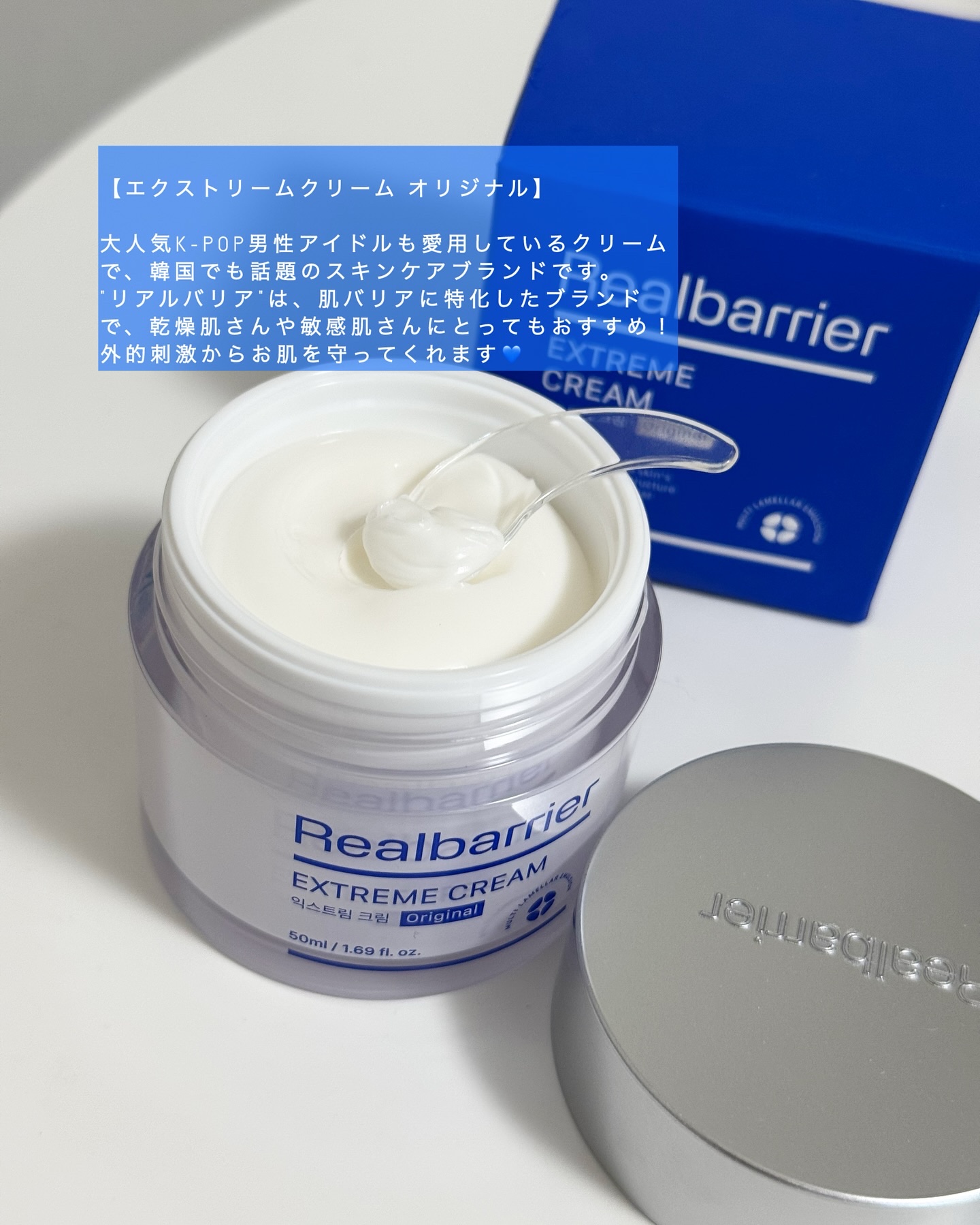 \大人気K-POP男性アイドル愛用クリーム/夏も軽やか保湿で敏感肌バリアケア💙肌バリア専門ブランド「リアルバリア」エクストリームクリームはリアルバリアの代表的な製品として、敏感肌、乾燥肌な方におすすめなクリーム。Realbarrierエクスト...