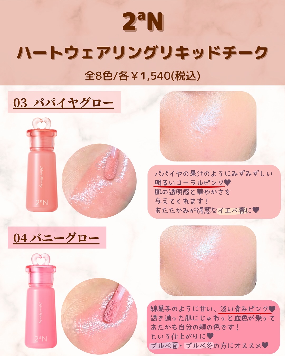LemonSquareを通じてIANFNCCo.,Ltd.からハートウェアリングリキッドチークを提供していただきました🎀今回紹介するのは2aNのハートウェアリングリキッドチーク✨️♡01BebeGlowいちごミルクのように柔らかくてライトなベ...
