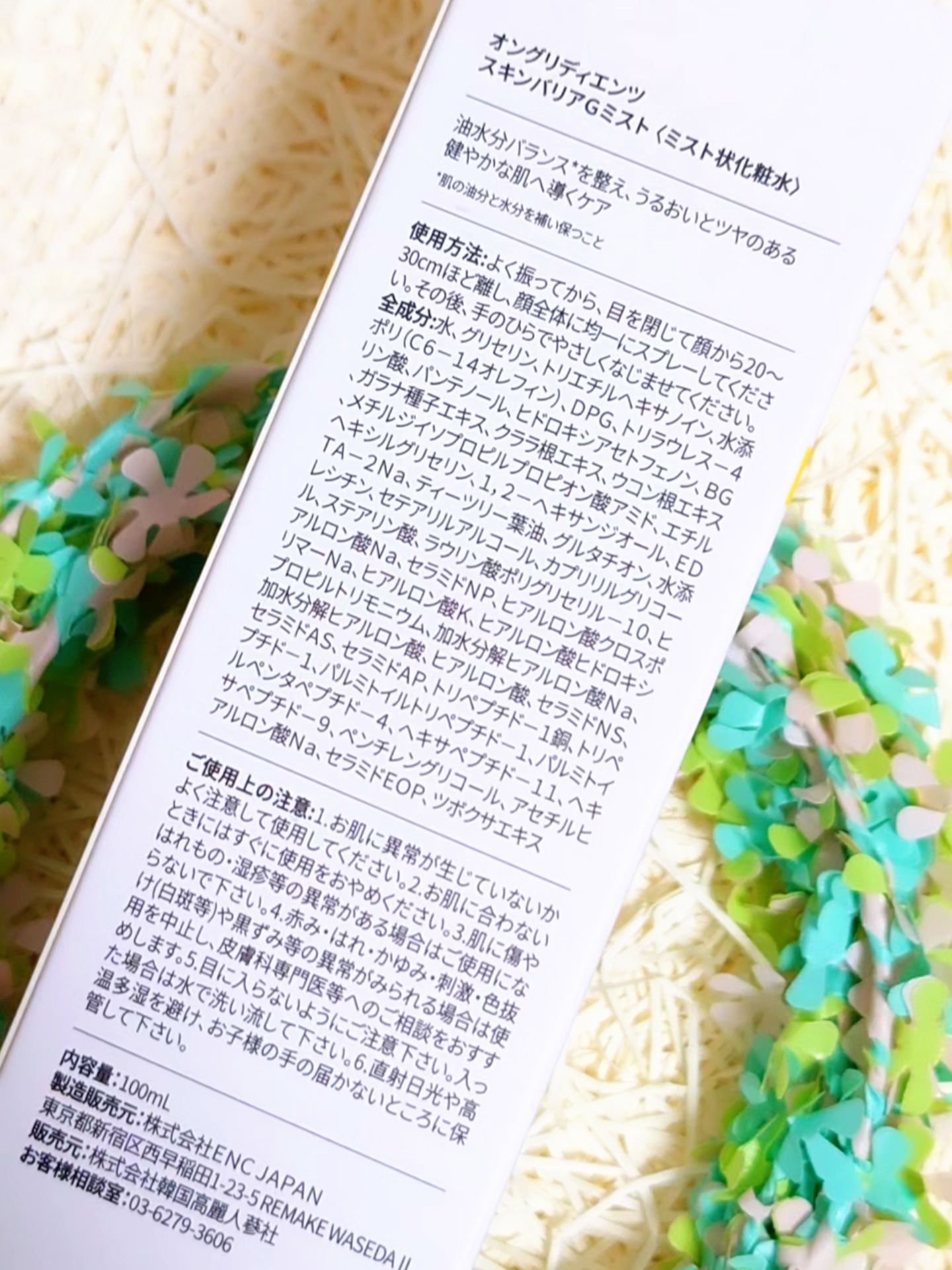 商品詳細情報Ongredients オングリディエンツ スキンバリアグローミスト