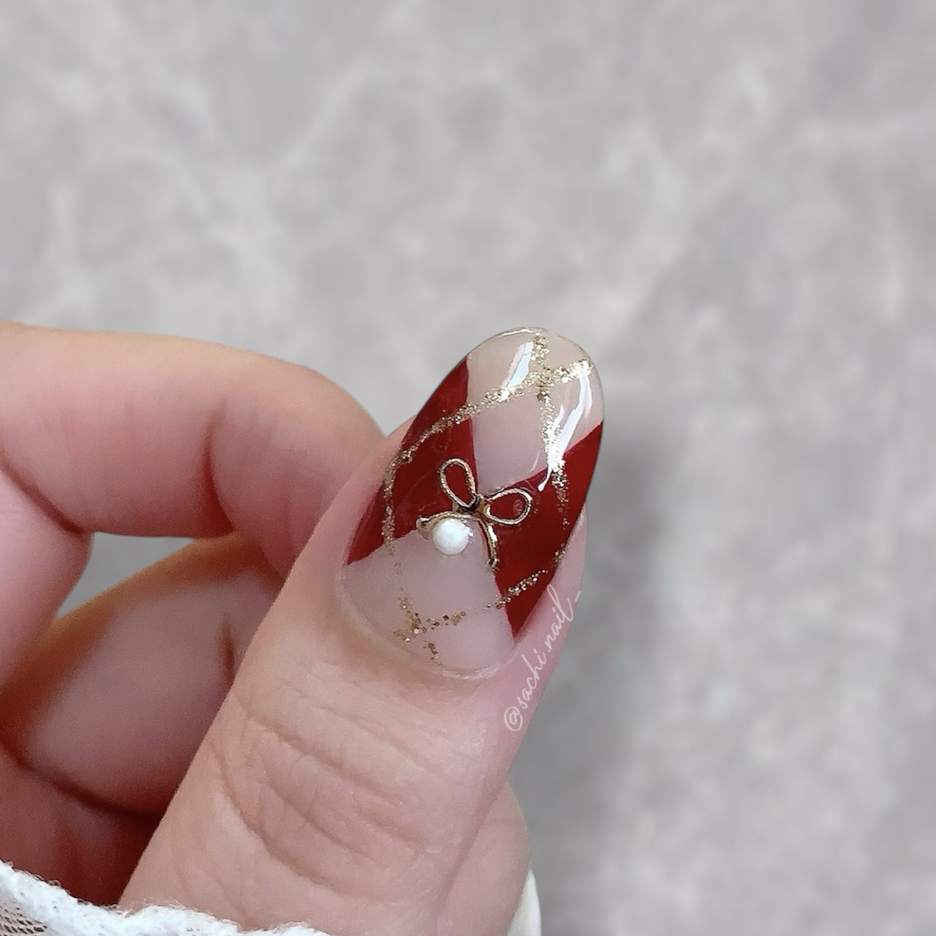 ワンカラーでも指ごとに色を変えるだけでオシャレに見えます💕 画像のようにゴールドラインとストーンを少し足すだけで華やかさがアップ🥰 何度かご紹介したことのあるスポンジで作るグラデーションです✨ スポンジを使うことで境目が綺麗に馴染んでくれます💕 アルミホイルの上でブラウンとトップコートを1:1くらいで混ぜたものを、トップコートのハケに取って3箇所に塗るだけ👌 事前に混ぜたものを塗ることで、爪の上でぼかすより簡単に出来ます💕 ベースカラーが乾く前に点置きしてぼかすことで綺麗にぼかせます✨ スピードが大事なので、使うポリッシュのキャップは全て開けておきましょう😊 天然石のラインはガタガタの方がより天然石っぽく見えるので、ラインを描くのが苦手な方でも大丈夫🙆♀️ 難しそうに見えて、やってみると意外と簡単に出来ます♡