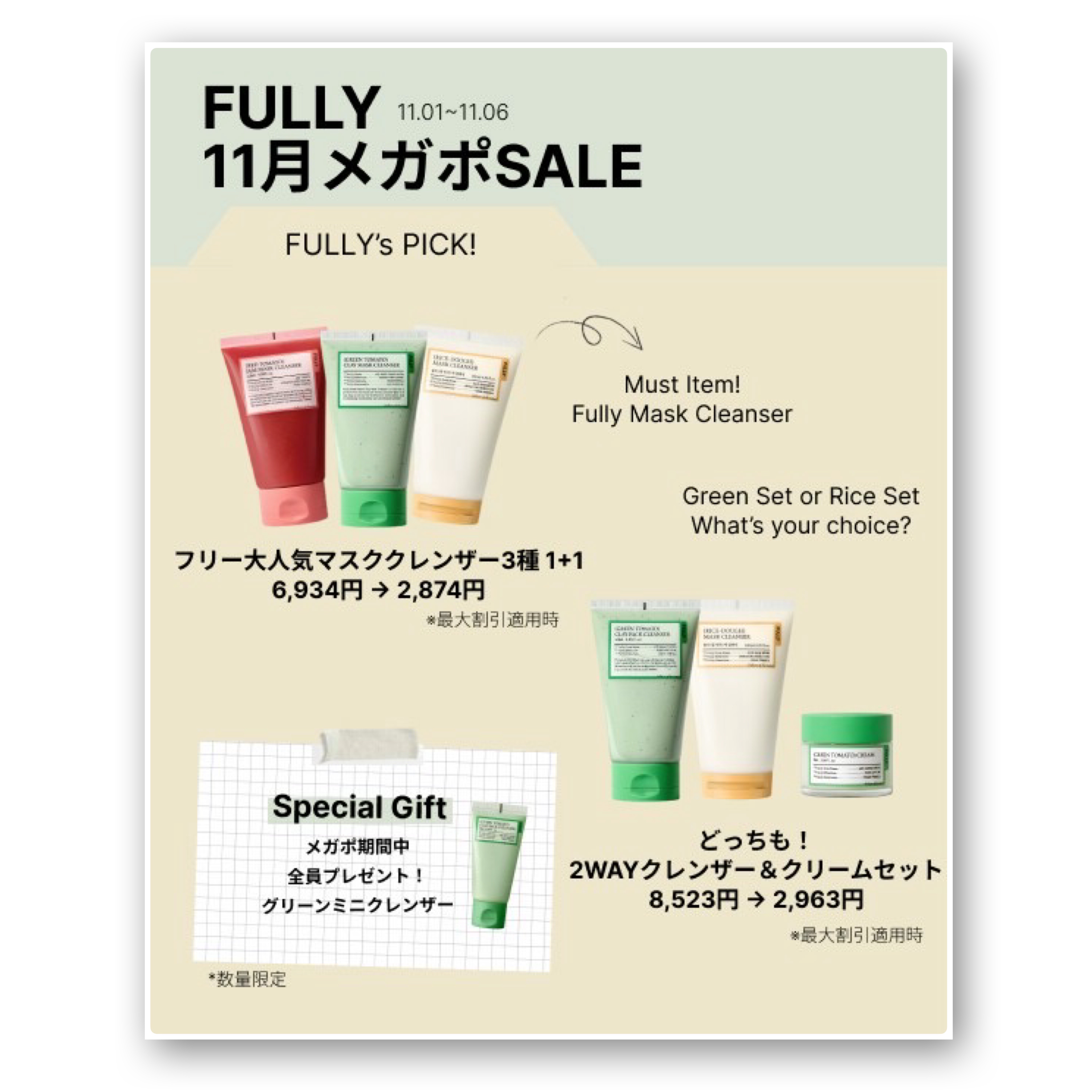 フリー友(FULLYアンバサダー)活動の一環でメガポのご案内です💁♀️✼••┈┈••✼••┈┈••✼••┈┈••✼••┈┈••✼💚マスククレンザー3種1+1(クレンザー3種の中からお好きな2種類を!)参考価格:6,934円→メガポ時:2,9...