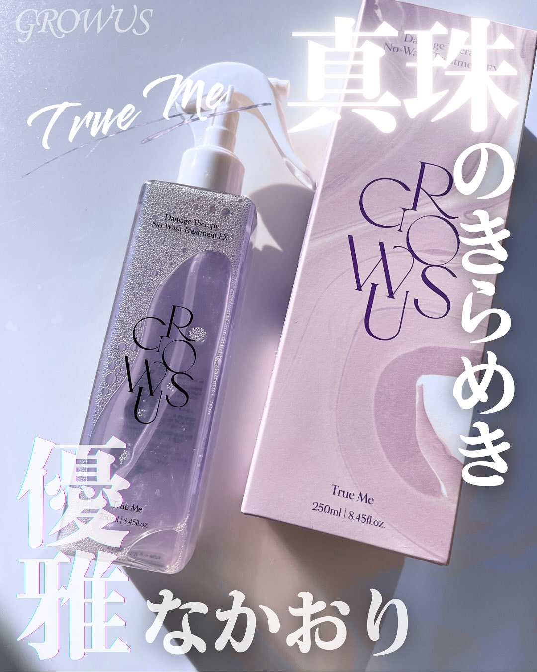 GROWUSダメージセラピーノーウォッシュトリートメントEXトゥルーミー可愛くて気になってたGROWUS🌙💗スプレータイプのヘアケアが好きで🥰もうこれは使ってすぐリピしたい!ってくらい気に入ったスプレー✴️傷んだケラチン繊維を補修するダブルコ...