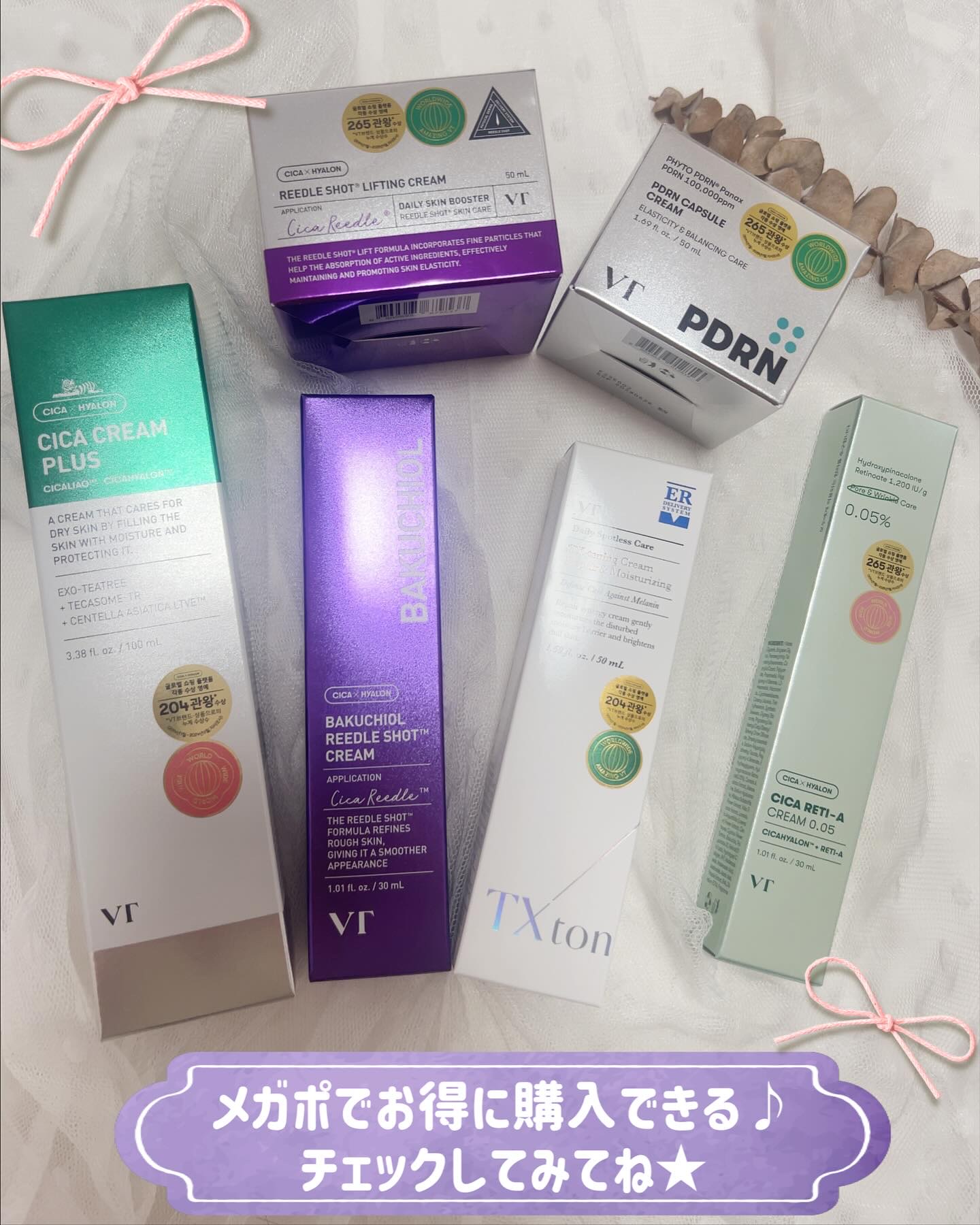 \VTメガポでお得に試せる6種/VTCosmeticsのメガポでお得に試せしてほしい肌悩み別の6点まとめたよ。◾️PDRNカプセルクリーム◾️バクチオールリードルショットクリーム◾️TXトーニングクリーム◾️CICAクリーム◾️シカレチAクリ...