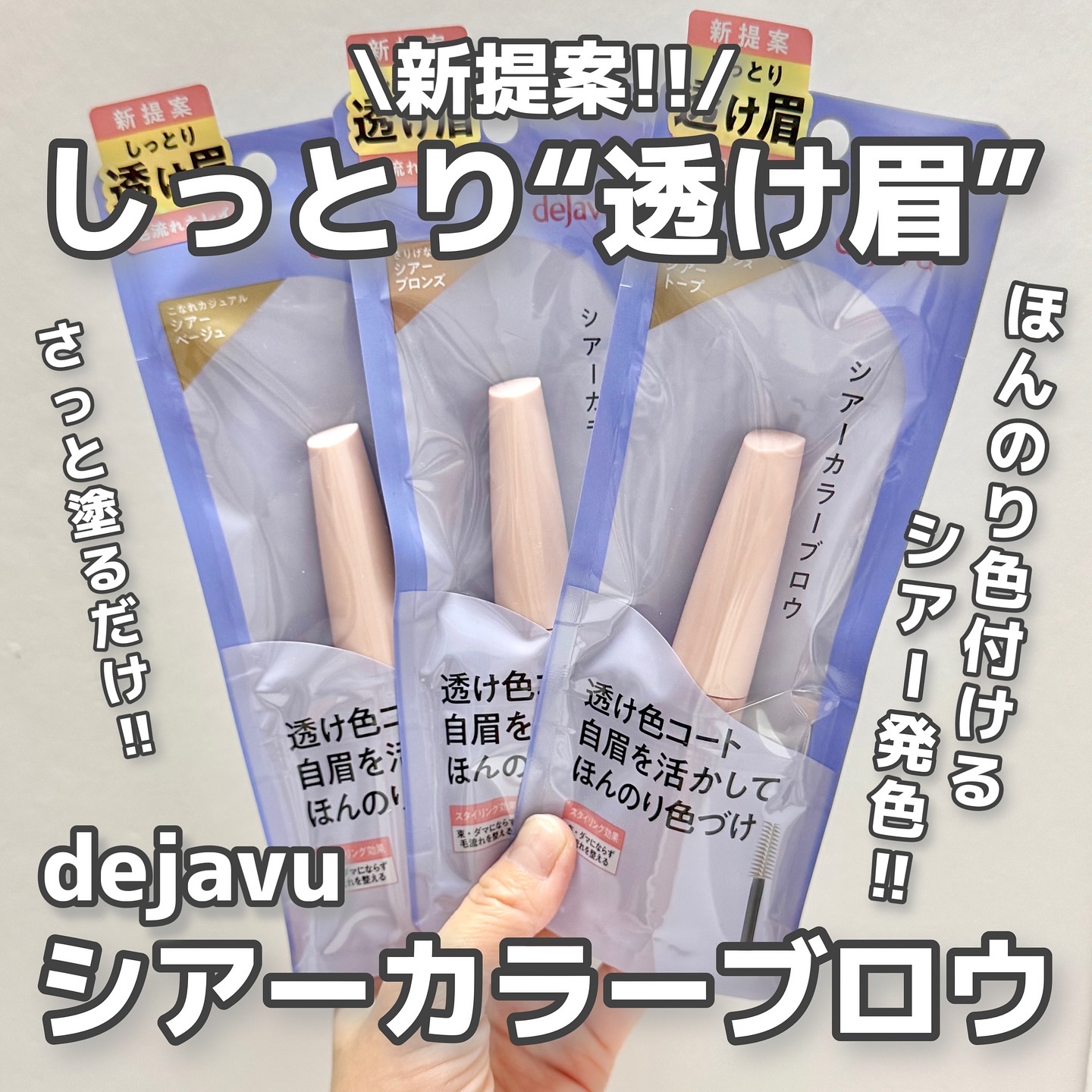 - \\デジャヴュからの新提案!自眉を活かしたシアーな色づきの眉マスカラ// 「シアーカラーブロウ」は、水彩絵の具のように“シアーな色づき”と、“美しい毛流れ”、 さらにパサつきのない“しっとりした質感”を1本で叶える眉マスカラ。 まるで元の眉がそのまま色づくような、“究極のナチュラル眉”に仕上げます*。 フィルムタイプで、皮脂・汗・こすれに強いのに、お湯だけで簡単に落とせます。 ※2025年9月19日より全国のPLAZA、MINiPLAで先行発売予定(一部お取扱いの無い店舗があります) *ブランド内において