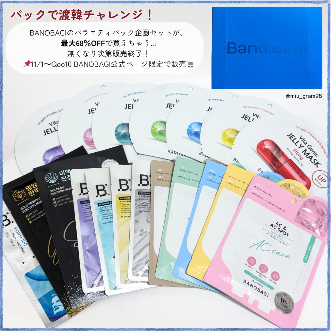 🇰🇷\パックで渡韓チャレンジ?/これ1つで「19種類」全部試せる贅沢セットが登場👑꙳☄︎【BANOBAGI】バラエティパック企画セット❣️話題のPDRNゲルマスクから、人気のマスク5種類、高級シートマスクなど…全部1枚ずつ体験出来る💪🫧BAN...