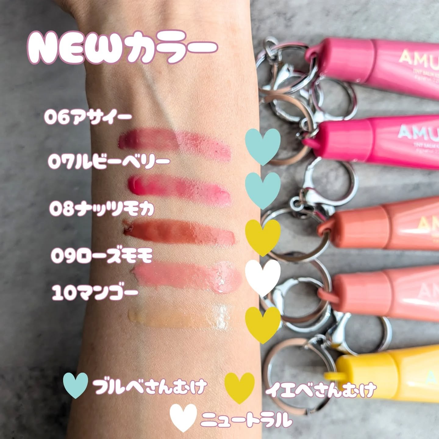 AMUSE♡ティントバームキーリング♡06ACAI08NUTMOCHA09ROSEMOMO果実感溢れる血色感が可愛いアミューズのティントバームキーリングから新色が出たよ♡このティントバームキーリングは、8種のペプチドコンプレックス、ライス&セ...