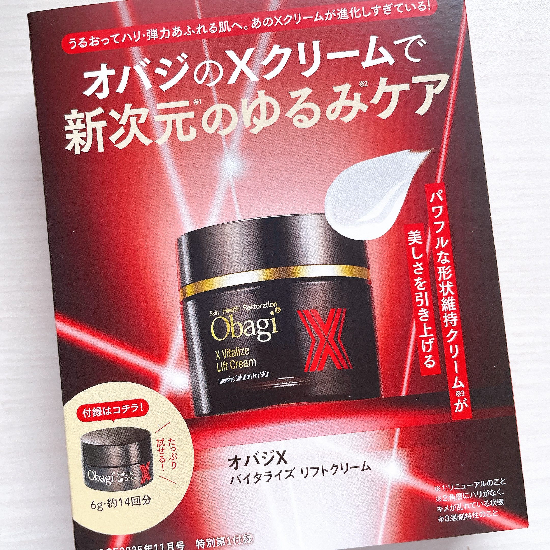 🖤オバジXバイタライズリフトクリーム🖤VOCE11月号付録ミニジャー6gです。やや硬めのクリームで、塗布すると引き上がるような感じがして良かったです❣保湿される感じもしました。オバジXバイタライズリフトクリームの塗り方で引き上げるように塗るの...