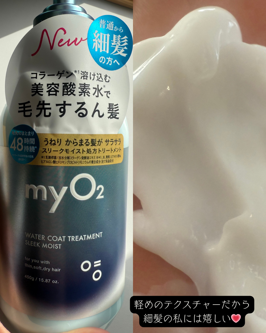 myO2さまからいただきました🎀myO2ウォーターコートシャンプー/トリートメント✨シャンプー難民に使ってみてほしい!サロンレベルの髪質別発想❣️私は細めの髪なのでスリークモイスト🩵重くないのになめらかにハリのある洗い上がり🥰使用感好きぃ🫶香...