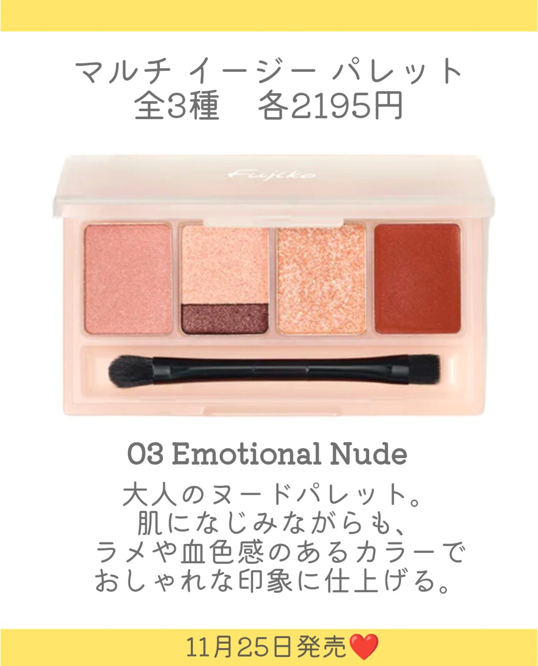 - マルチに使える5色パレット \これ1つ/簡単!垢抜けメイク メイク迷子を救う、マルチな頼れる一軍パレット マルチコスメやミニコスメへの注目が高まる今、“マルチ”で“イージー”に使えるマルチイージーパレットがFujikoから登場♡ 必要最低限のアイテムだけをコンパクトにまとめ、これ一つでメイクが簡単に! マルチに幅広く使えるパレットは#お直しコスメや#旅行にもおすすめ♡ 持ち運びやすさと使いやすさを両立し、シーンや気分に合わせて自由にメイクを楽しみながら、 “なりたい自分”を叶えることができます!