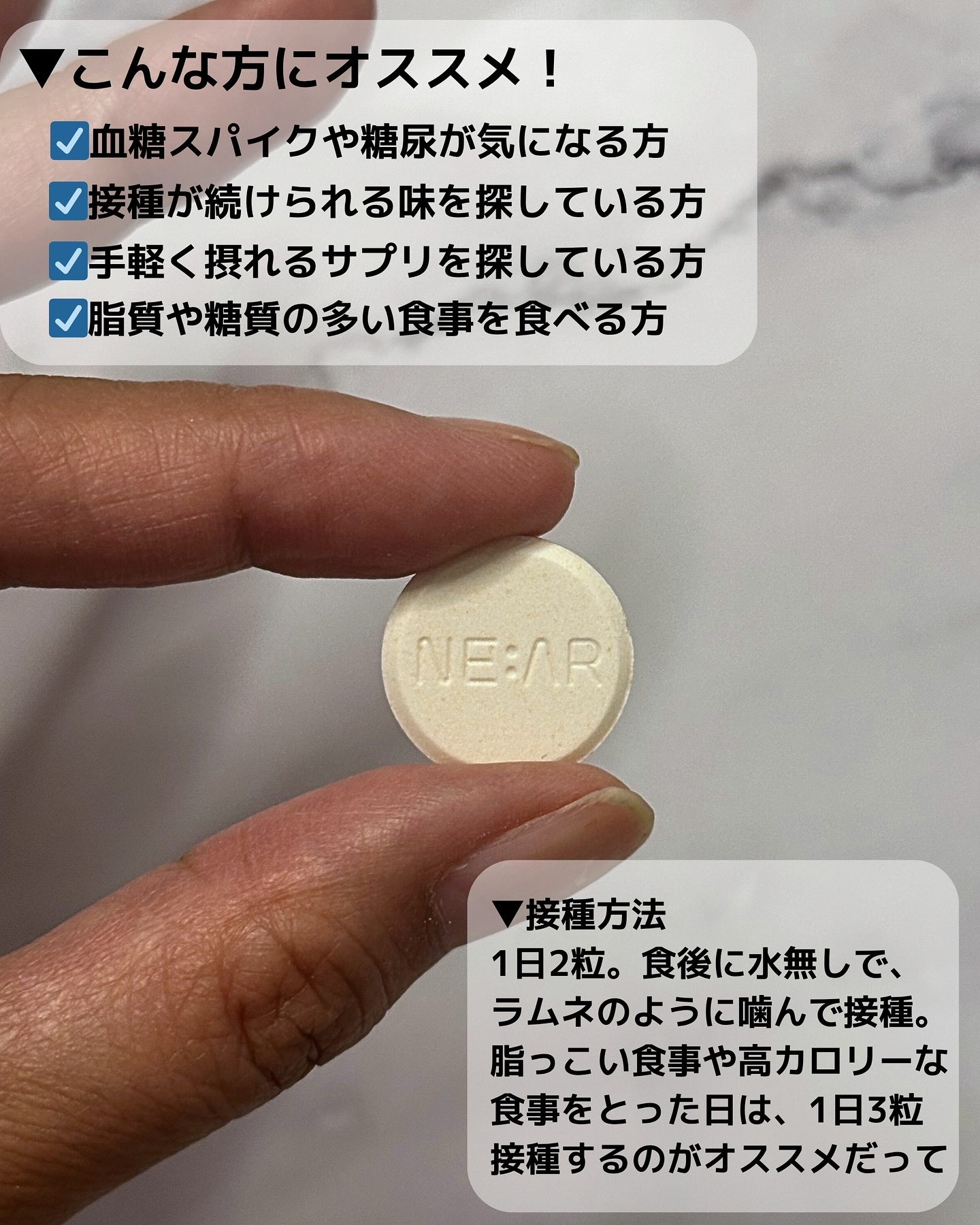 \食後の“だるい・眠い”をスッキリ解消!💡/血糖スパイクによる眠気や疲れを、ニアルアップルサイダービネガーでリフレッシュ✨🍎りんご味のキャンディタイプだから、酸っぱ過ぎなくておいしい!💊水なしOK・バッグに入れてどこでもケア韓国アイドルも愛用...