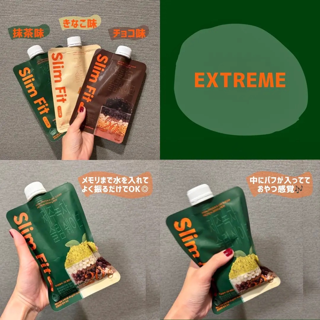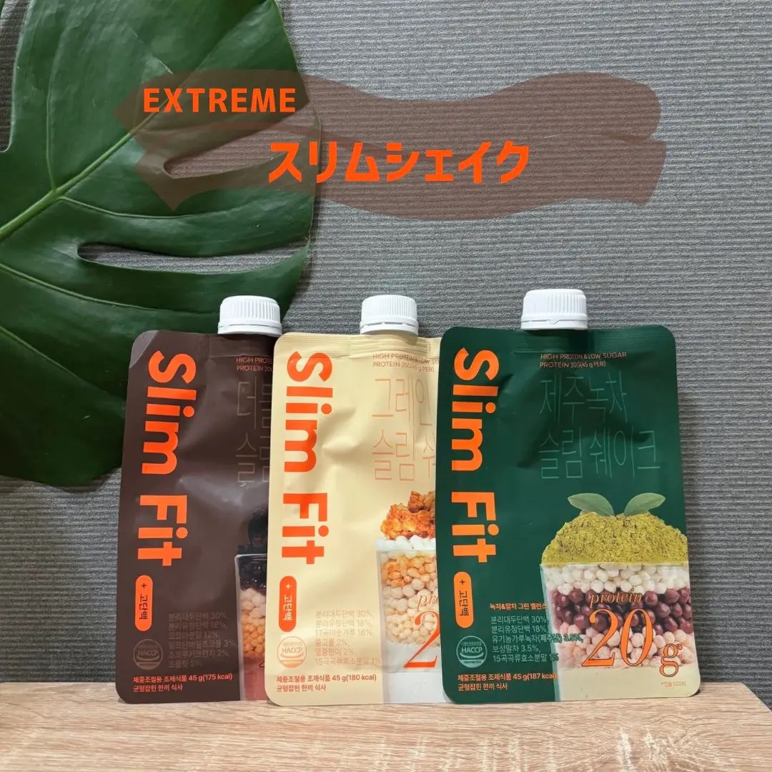 EXTREMEより商品提供いただきましたスリムシェイク3種(きな粉味/チョコ味/抹茶味)手軽においしく♡1日1食をスリムシェイクに♡1包にタンパク質20gだよ〜🥺✨プロテインって味が美味しくないと続けられないよねぇ🫨旦那が毎日プロテイン飲んで...
