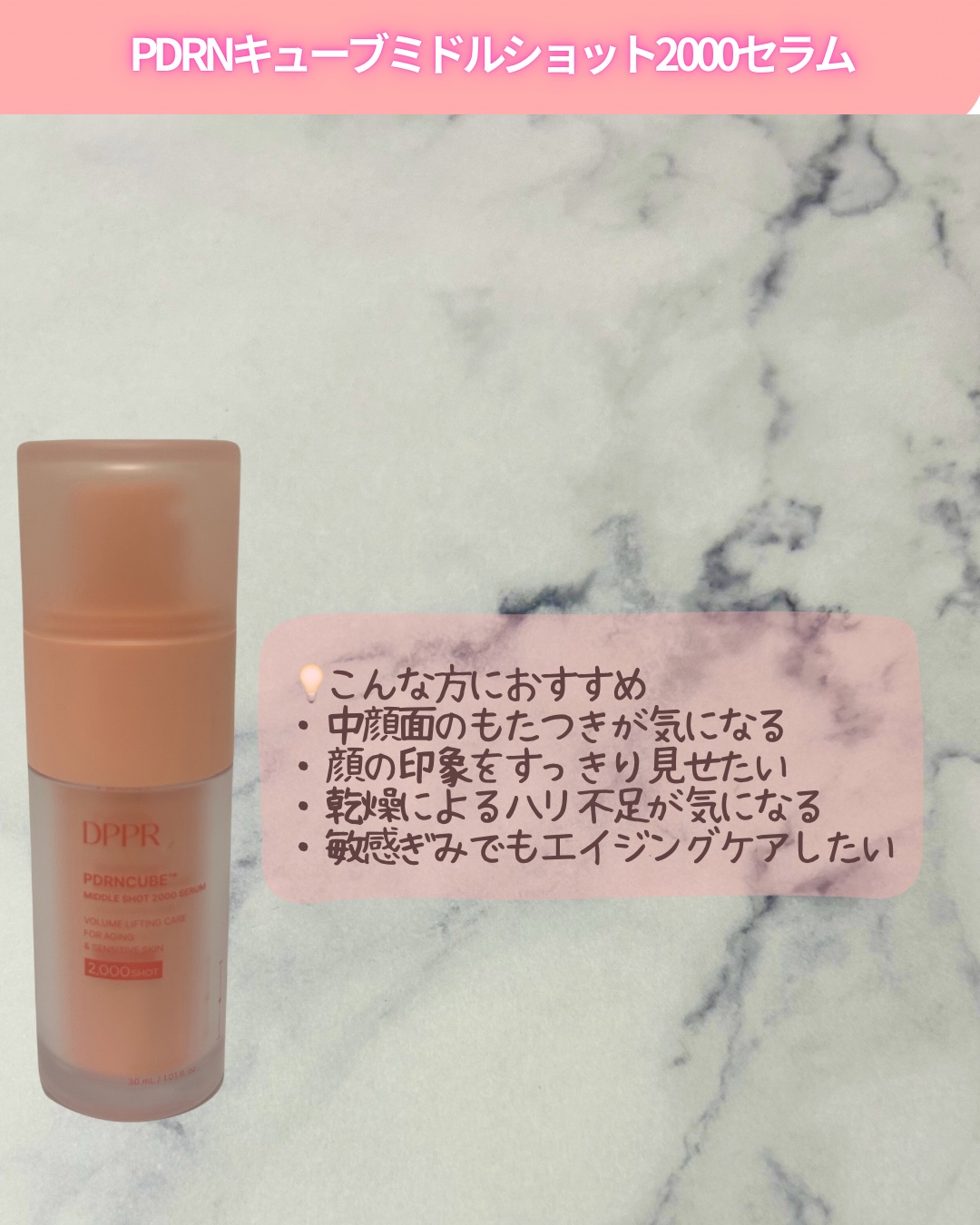 💎話題のPDRNで中顔面ケア💎@dppr_jpさまより✔️PDRNキューブ中顔面圧縮セラム✔️PDRNキューブミドルショットクリームをいただきました✨🌸セラムかわいいピンク色で、少しとろみのあるテクスチャー。伸びがよくてツヤっと仕上がり、ベタ...