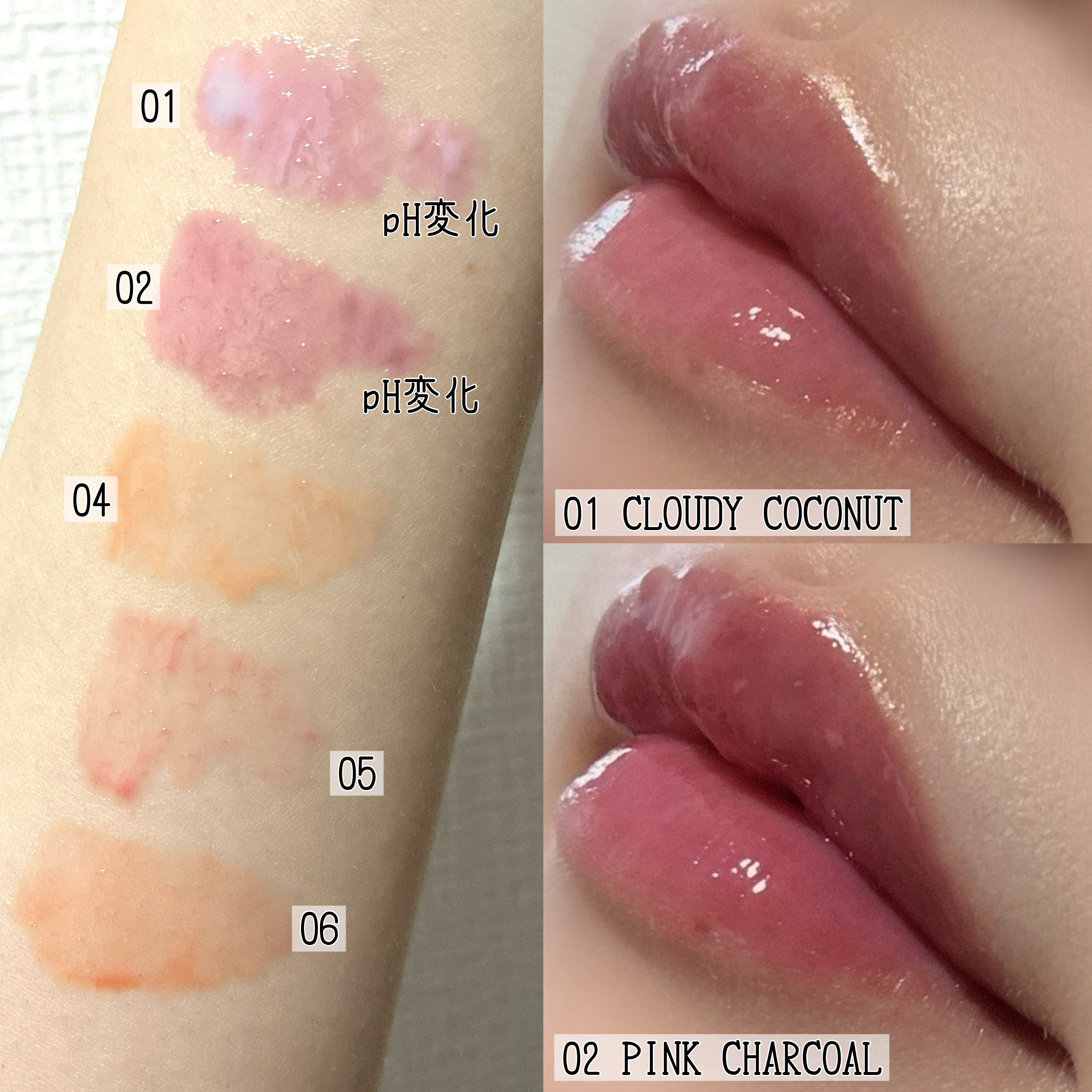 - <商品特長> ⚫まるで果汁なジューシーカラー スムージーから着想を得たマーブルリップ。果汁のようにみずみずしい、透明感のある艶めきと血色を叶えます。 01,02番は一人ひとりの唇のpHに応じて、あなただけの色を演出するカラーチェンジタイプです。 塗るたびに気分の上がる、ほんのりフルーツの香り付き。 ⚫自然に溶け込むマーブルリップ 唇をやさしく包み込むとろ〜リッチなグロスなのに、不快なベタつきを感じさせないテクスチャーで、艶やかさと濃密なリップケアの心地よさを同時に叶えます。 マーブル模様は塗布と同時に唇の表面でとろけて混ざり合い、ムラのない均一な発色を実現。 肌触りの良い柔らかなアプリケーターが、なめらかなツヤのヴェールをひと塗りで唇に届けます。 ⚫うるおい続く!集中保湿ケア 美容保湿成分のセラミド*¹・ビタミンC*²・ココナッツエキス*³・ローマカミツレ花エキス・ワカメエキスを贅沢に配合。 乾燥などの外的要因から唇を保護して、長時間保湿が持続します。 ヴィーガン処方/パラベン・アルコールフリー *¹セラミドNP(保湿) *²パルミチン酸アスコルビル (保湿) *³トリ(カプリル酸/カプリン酸)グリセリル (保湿)