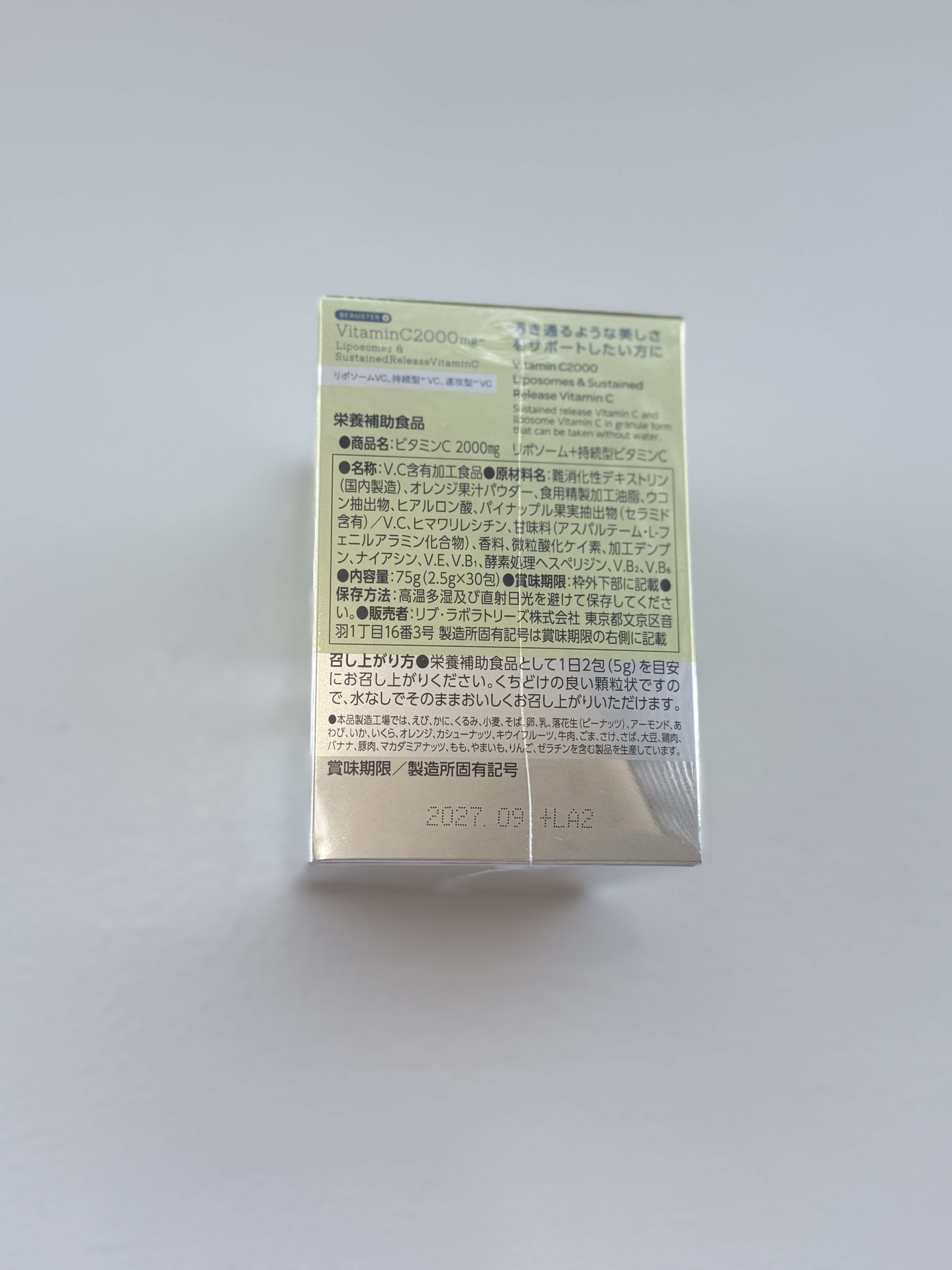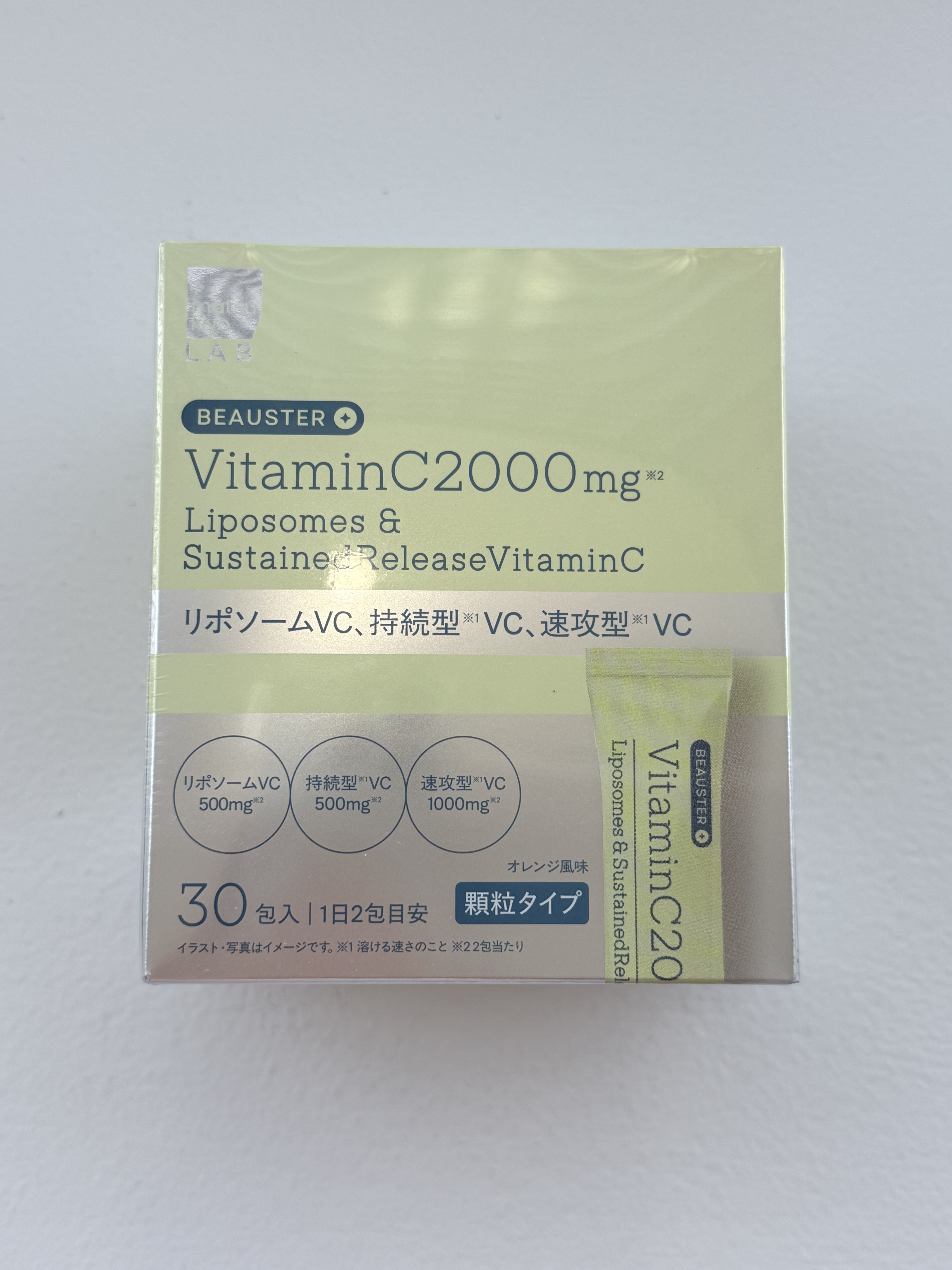 - 「ビタミンC2000 リポソーム+持続型VC」は、リポソーム型、持続型、速攻型の3種のビタミンCを組み合わせて2000mg配合。さらにセラミドなども加えた贅沢設計です。
