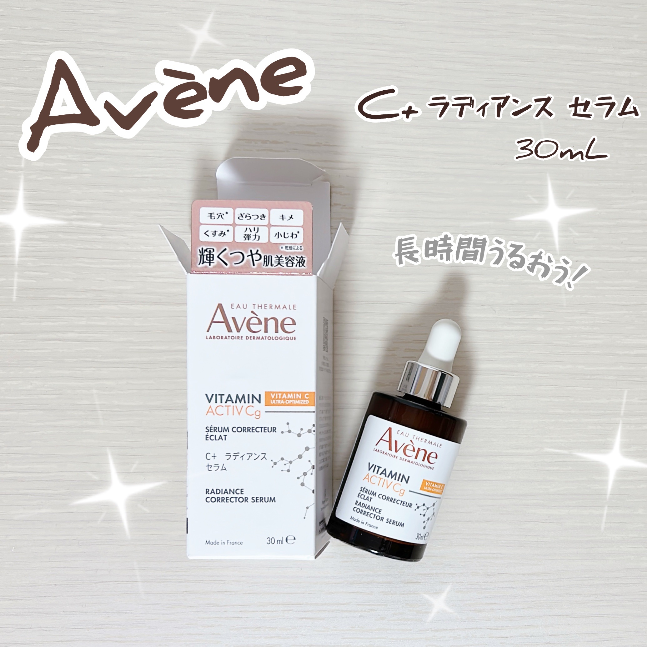 - 乾燥によるくすみや小じわ*1が気になる敏感肌に。”攻め”の一滴で輝くようなハリつや肌へ導くビタミンCg*2配合美容液 〇敏感肌の乾燥によるエイジング悩みに着目。ビタミンCg*2配合で、肌のきめを整え、毛穴・ざらつきをケアして輝きのあるなめらかな素肌に。 〇ナイアシンアミド*3がうるおいバリアを守ります。 〇ビーガンレチノール(バクチオール*3)が乾燥による小じわを目立たなくします*1。 〇アベンヌ温泉水*4配合で、肌にうるおいを与え整えます。 〇首・デコルテにも使用できます。 〇エレガントなフローラルブーケの香り *1効能評価試験済み *2アスコルビルグルコシド(整肌成分) *3整肌成分 *4温泉水(整肌成分) 2024年10月2日:ツルハ限定にて発売開始 2025年9月21日:全国発売開始