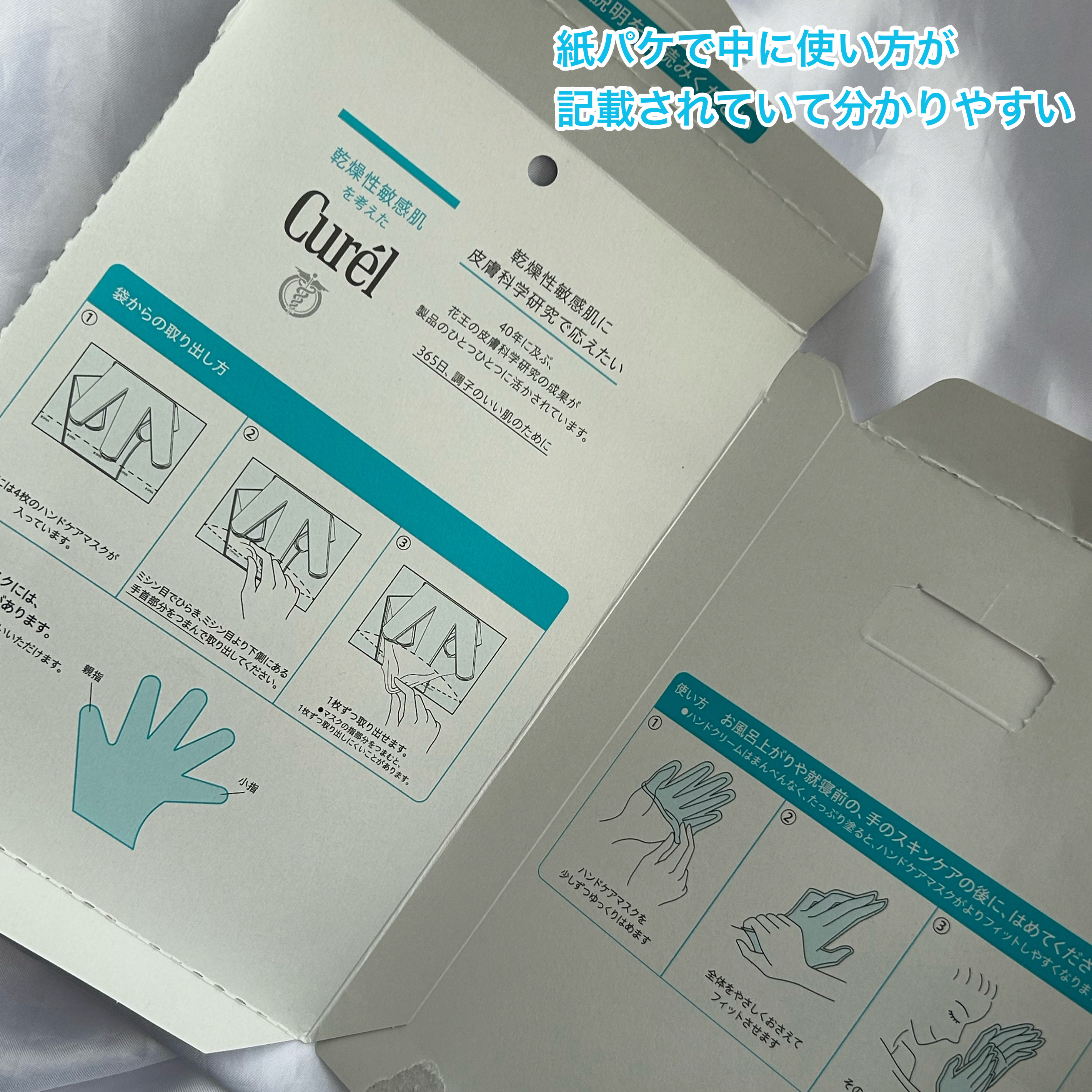 キュレルのお手入れ底上げマスク2種類使ってみました😊こちらは、寝ている間にお手入れを底上げするドライタイプのマスクになります🌜ハンドクリームや保湿クリームをたっぷり塗ってスキンケアした後に使います!蒸れにくく、やわらかくて摩擦の少ない独自開発...