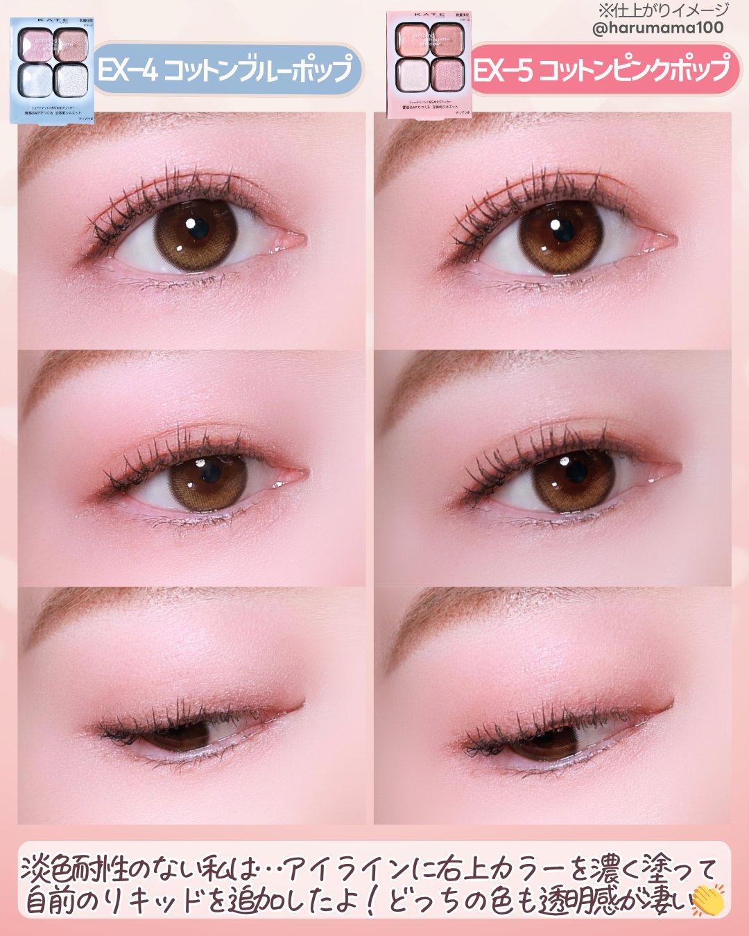 - ミュートマット×きらめきグリッター 正反対の2つの質感コントラストでクリッと丸い目もとに仕上がる ポップアップするような立体的シルエットを引き立てる 質感トリックアイシャドウ ■チップ付き <EX-1 ブラッドオレンジポップ><EX-2 ホットレッドポップ><EX-3 ウォームベリーポップ> 質感トリックで、クリっと丸い目もと印象へ。 ミュートマットときらめきグリッターの正反対の2つの質感コントラストで、ポップアップするような立体的シルエットを引き立てるアイシャドウ。 ほんのり血色感を足せる火照りカラーが登場。 ■淡いパステル調の限定色 EX-4【コットンブルーポップ】 EX-5【コットンピンクポップ】
