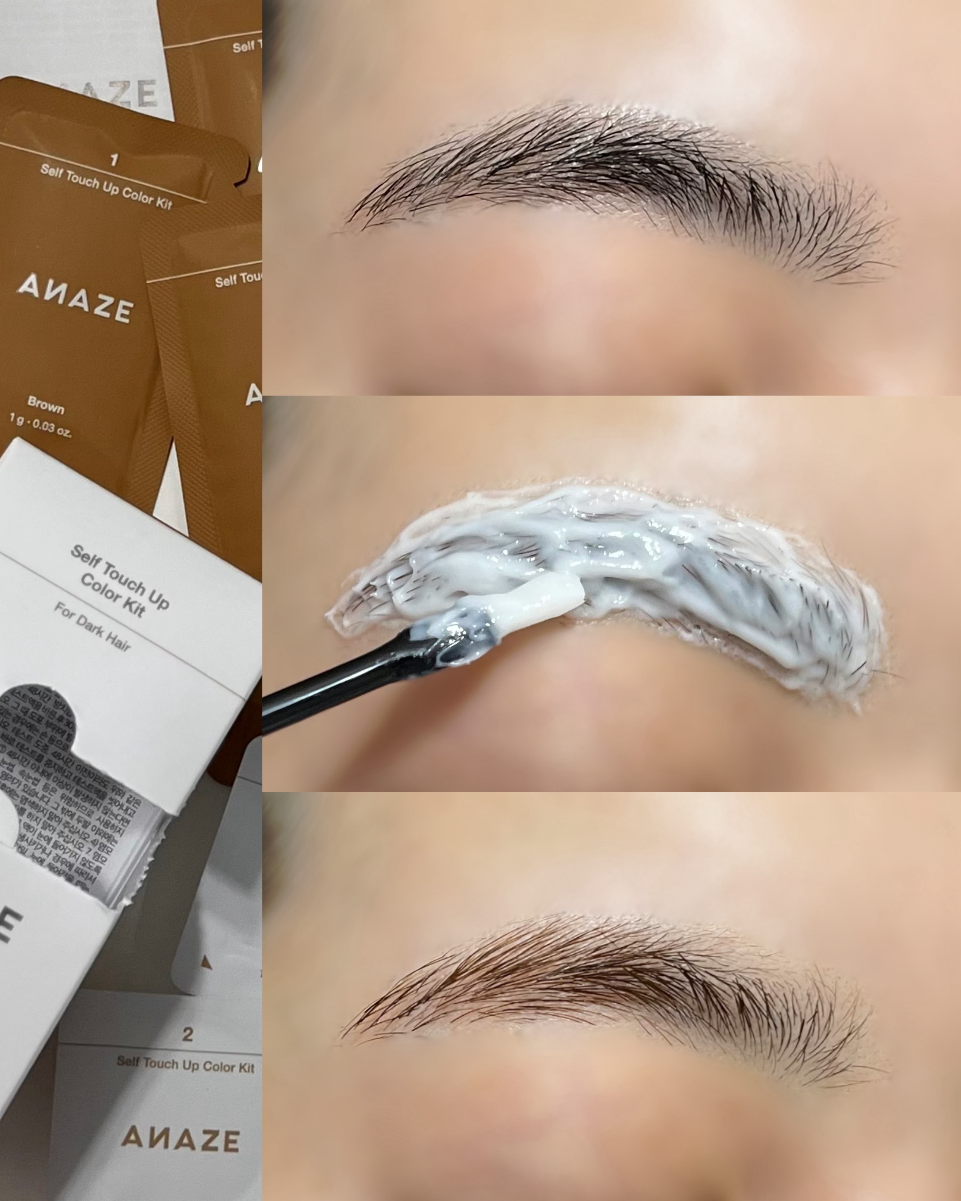 Qoo10のサンプルマーケットでいただきました👌🧡ANAZE🧡[セルフタッチアップカラーキット]韓国の有名美容師キウ先生がプロデュースしたブランド✂️20代は髪を染めていたので眉カラー必須でした🙌眉を染めるなんて懐かしい。。。30代に入り、お...