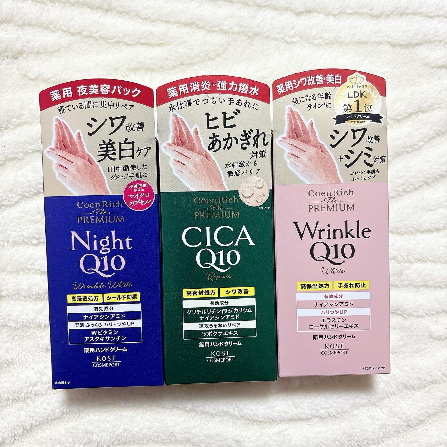 ・・/コエンリッチザプレミアム💚薬用CICAリペアハンドクリームN💙薬用リンクルナイト ハンドクリーム🩷薬用リンクルホワイトハンドクリーム↓Instagram@kosecosmeport_official\・・年齢サインは顔だけではなくて手に...