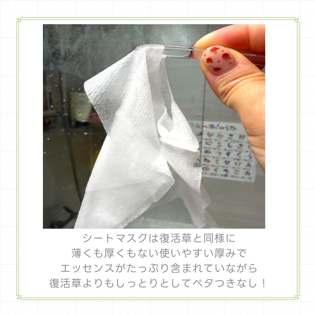 | 厚すぎず薄すぎない肌あたりのいいシートマスク。パック後はたっぷり保湿されてる感じでうるツヤすごかった✨ | 詳細を見る |