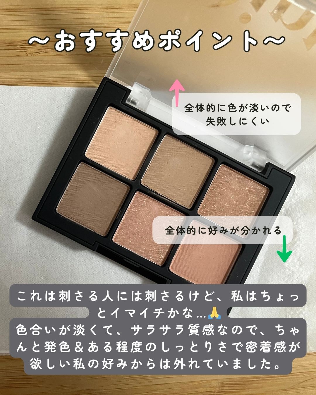 | アイシャドウパレットランキング第6位 | 粉質もパサパサしていないしっとりさらさらの粉質で、ベターザンアイズを持っている方なら想像のつくあのサラサラ感です | 詳細を見る | |