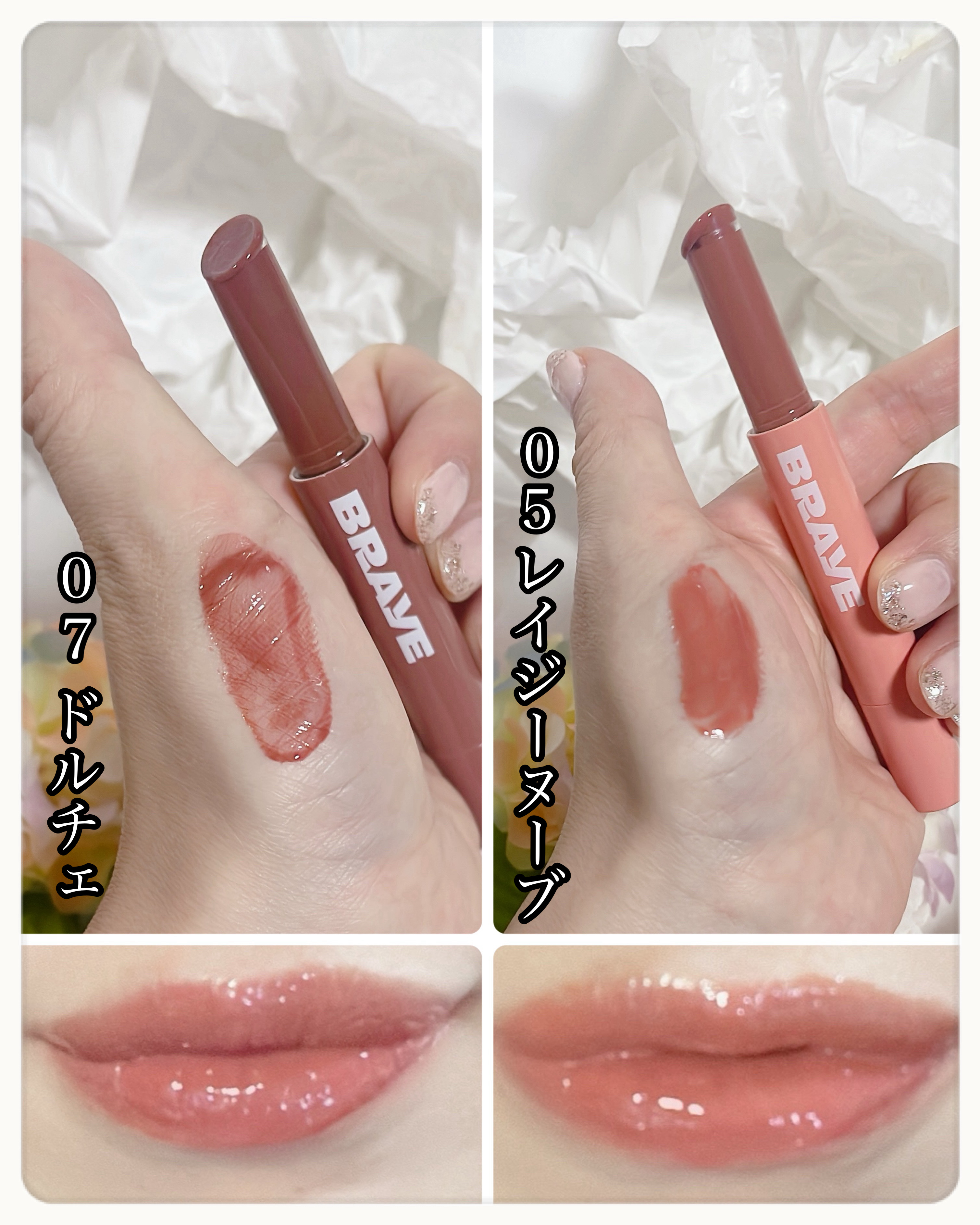 ♡#PRBRAYE@braye_jpメルティングリップスウィート05レイジーヌーブ/07ドルチェ話題のBRAYE《メルティングリップスウィート》をお試し🪄💕イエベ向け2色(05レイジーヌーブ/07ドルチェ)🩰✔️唇の温度でとろけるバーム質感✔...