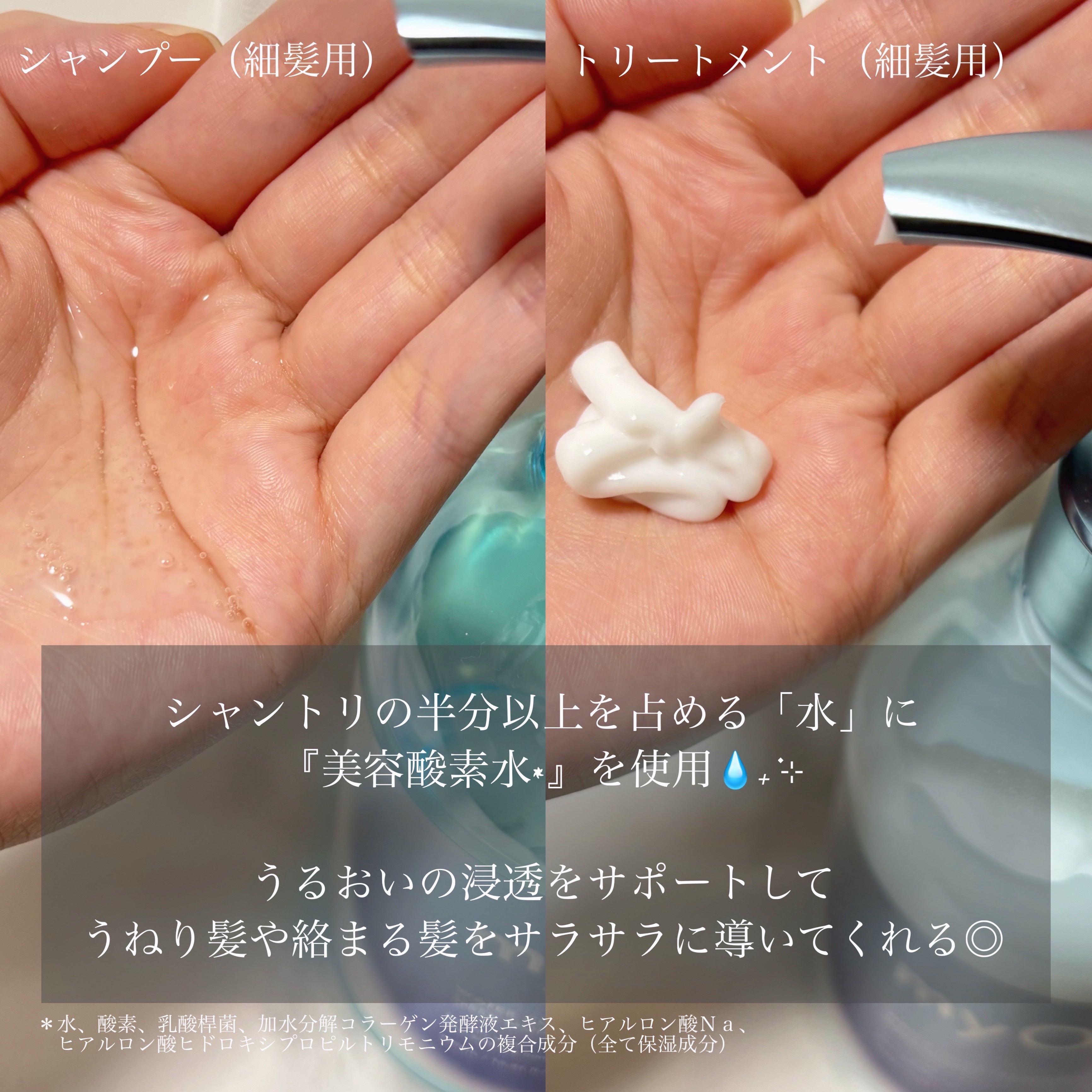 - <シャンプー450mL> 水、ラウロイルメチルアラニンNa、コカミドプロピルベタイン、コカミドメチルMEA、ココイル加水分解コラーゲンK、加水分解ケラチン、ココイルメチルタウリンNa、ラウレス−4カルボン酸Na、酸素、乳酸桿菌/加水分解コラーゲン発酵液エキス、アスペルギルス/加水分解コラーゲン発酵液、イソステアロイル加水分解コラーゲンAMPD、(ジヒドロキシメチルシリルプロポキシ)ヒドロキシプロピル加水分解コラーゲン、水溶性コラーゲン、加水分解コラーゲン、ヒアルロン酸Na、ヒアルロン酸ヒドロキシプロピルトリモニウム、シリカ、加水分解ケラチン(羊毛)、白金、炭酸水素Na、セルロースガム、アルギニン、ポリクオタニウム−10、塩化Na、水酸化K、DPG、フィチン酸、酸化銀、ポリクオタニウム−47、EDTA−2Na、ピロ亜硫酸Na、BG、クエン酸、安息香酸Na、フェノキシエタノール、エタノール、PPG−7、香料 <トリートメント450g> 水、セテアリルアルコール、アモジメチコン、ベヘントリモニウムクロリド、ジメチコン、シクロペンタシロキサン、パルミチン酸エチルヘキシル、酸素、乳酸桿菌/加水分解コラーゲン発酵液エキス、イソステアロイル加水分解コラーゲンAMPD、水溶性コラーゲン、加水分解コラーゲン、ヒアルロン酸Na、ヒアルロン酸ヒドロキシプロピルトリモニウム、シリカ、加水分解ケラチン(カシミヤヤギ、羊毛)、白金、炭酸水素Na、セルロースガム、ジマレイン酸プロピレンジアンモニウム、γ-ドコサラクトン、メドウフォーム-δ-ラクトン、セバシン酸ジエチル、トコフェロール、PEG-90M、クエン酸、クエン酸Na、EDTA-2Na、BG、イソプロパノール、フェノキシエタノール、エタノール、BHT、香料