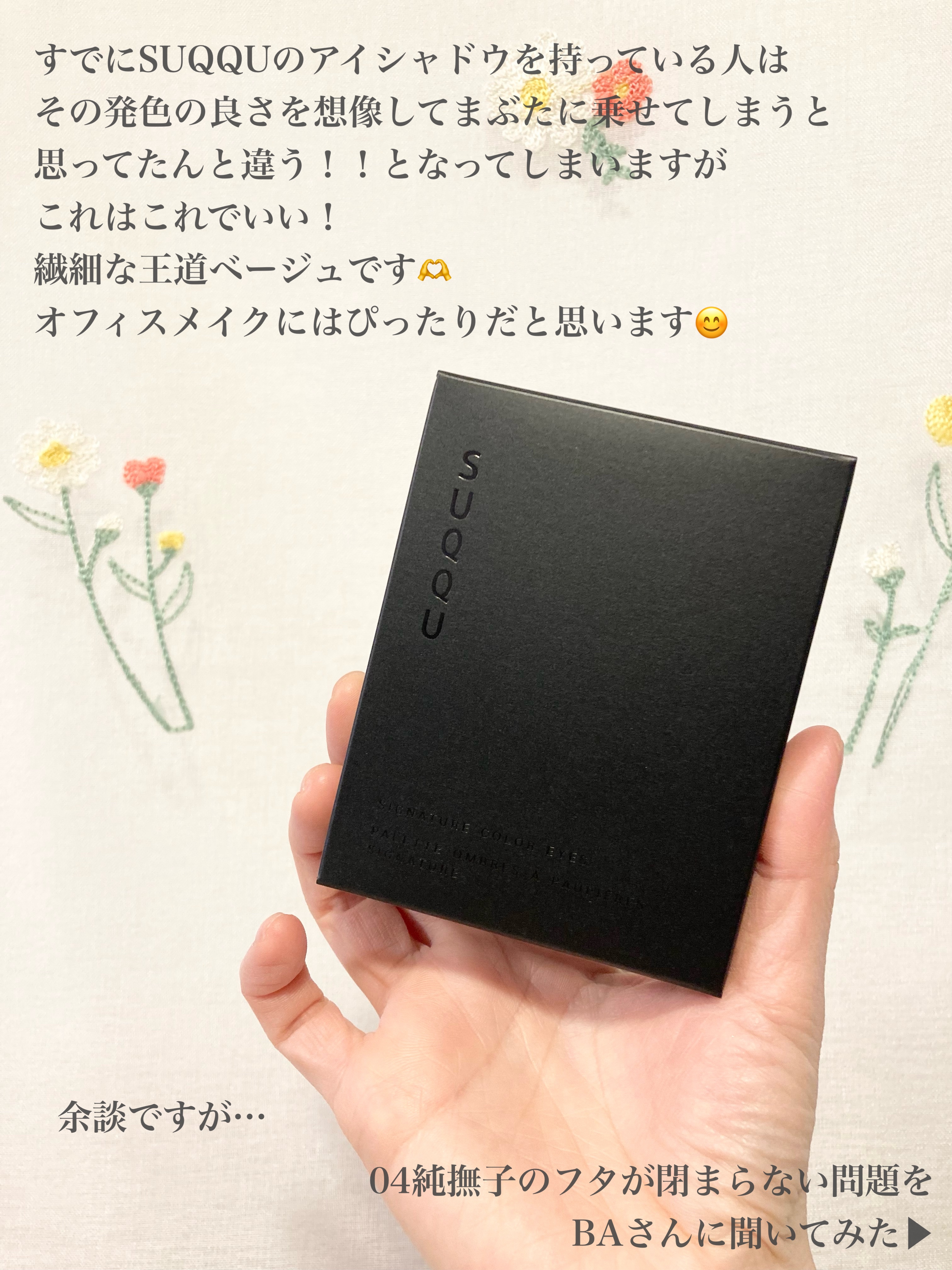 - 新たに生まれるSUQQUの顔“シグニチャー”なアイシャドウパレット。こだわりの色と洗練で、贅がきらめく目元に。 求めたのは、気高いベーシック。ぴたっと密着。まるでまぶたの一部になりすますような“色艶の薄膜”。重ねても透明感が濁らず、白浮きしない洗練。至福のなめらかなテクスチャーがもたらす満足感。 贅沢な絹や麻をさりげなく着るように、質のいいベーシックにこだわる大人の贅を表現。品の良さとモードを兼ね備えた新しいアイシャドウパレットです。