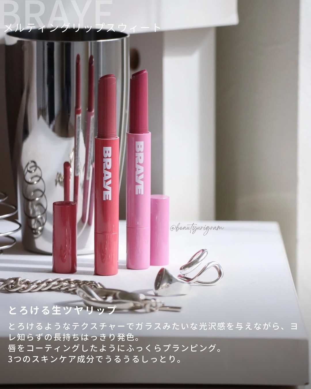 \とろけてするする生ツヤリップ♡/ 【BRAYE(ブレイ)メルティングリップスウィート】.°—————————————————-°.〜うるツヤ発色×ほんのりプランプ感!〜☑︎SNSで大バズりのツヤリップ💋☑︎とろけるようにスルスル塗りやすい☑...