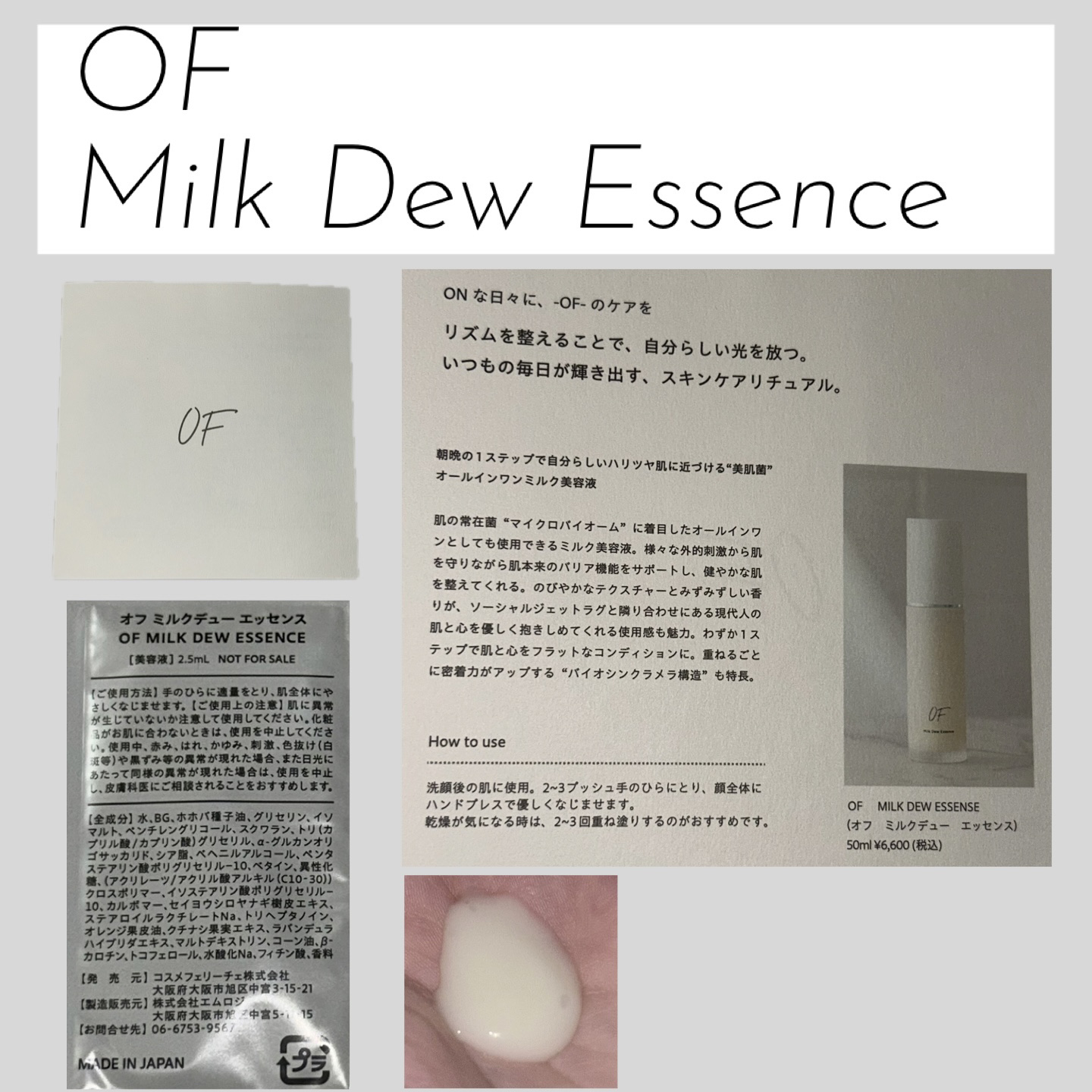 OF MilkDewEssenceMimiBeautyキャンペーンにて当選し、サンプルをいただきました🌟オールインワンとしても使える、ミルク美容液です🤍サラッとした美容液で、使った翌日いつもより肌がふっくらとしていて使い心地最高でした!優しい...