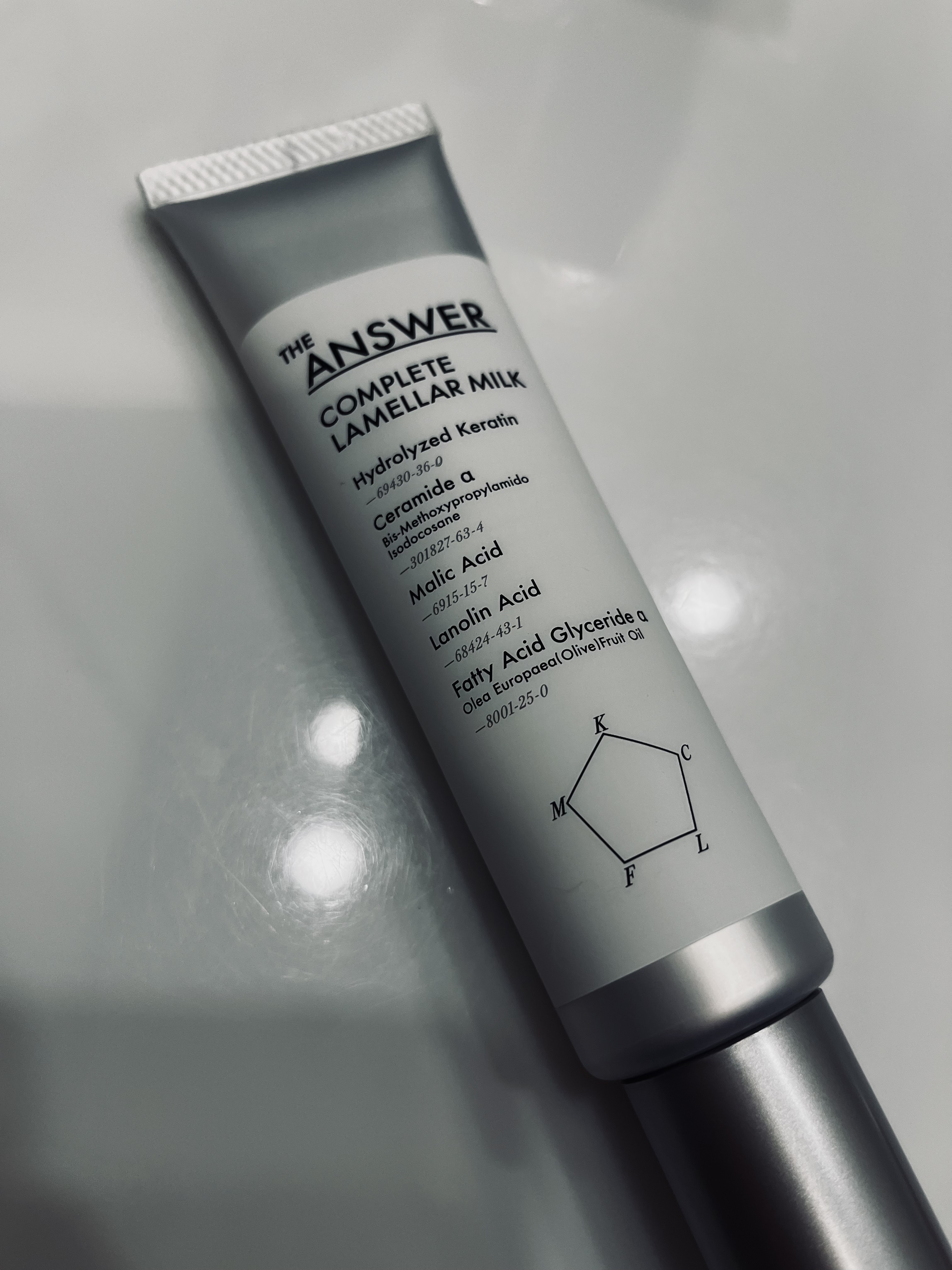 ★花王100年の研究からたどり着いた、ヘアケアの答え★THEANSWERコンプリートラメラミルク【テクスチャー】真空式ポンプチューブのミルクテクスチャー💟【香り】ベルガモット&ダフネの香り💎【使用感】・うるおい、まとまり、ツヤ、なめらかさ、し...