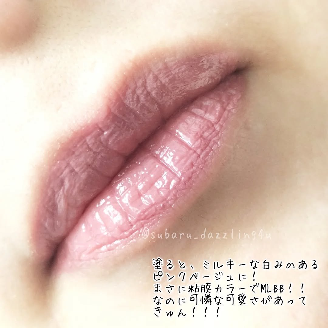 ⭕良いところ🥰・ティントでは珍しい白みピンク・塗布後は白浮きせず、程よいミルキー感・青みピンクなので透明感があり、ブルベ優勝・色残りも良い ➡︎5分後にoffしても、色味・ツヤ感あり ※3枚目の画像を参照 白みの強いミルキーピンク!ティントには珍しい、絶妙な白み具合で可憐な雰囲気になれます♡ 青みが強いのでブルベさん歓喜カラー✨透明感溢れる、美少女リップが完成👏