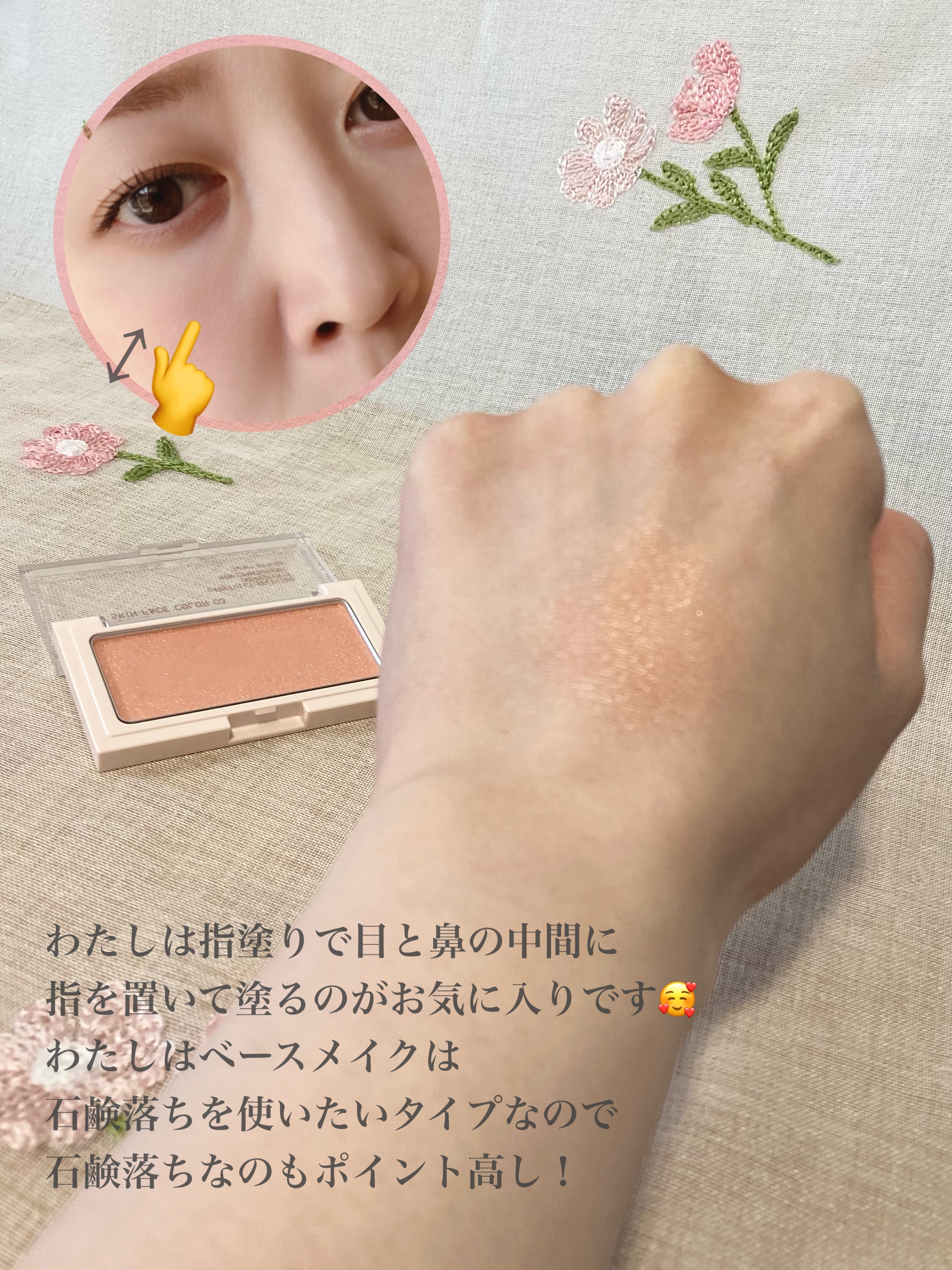 | 薄づきのチークになっています!少しラメ感があり、ツヤが欲しい人にはかなりオススメです。 | 詳細を見る | ||
