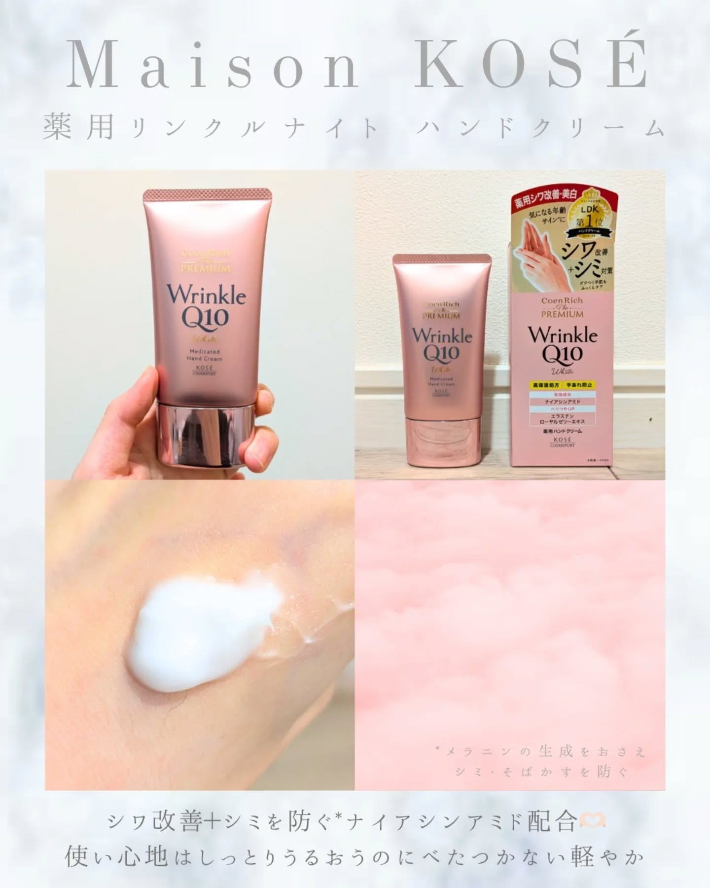 #PRコエンリッチ@kosecosmeport_officialコエンリッチザプレミアム薬用リンクルホワイトハンドクリーム薬用リンクルナイトハンドクリーム薬用CICAリペアハンドクリームN年齢サインが出やすい手のお悩みに✨3種類のハンドクリー...