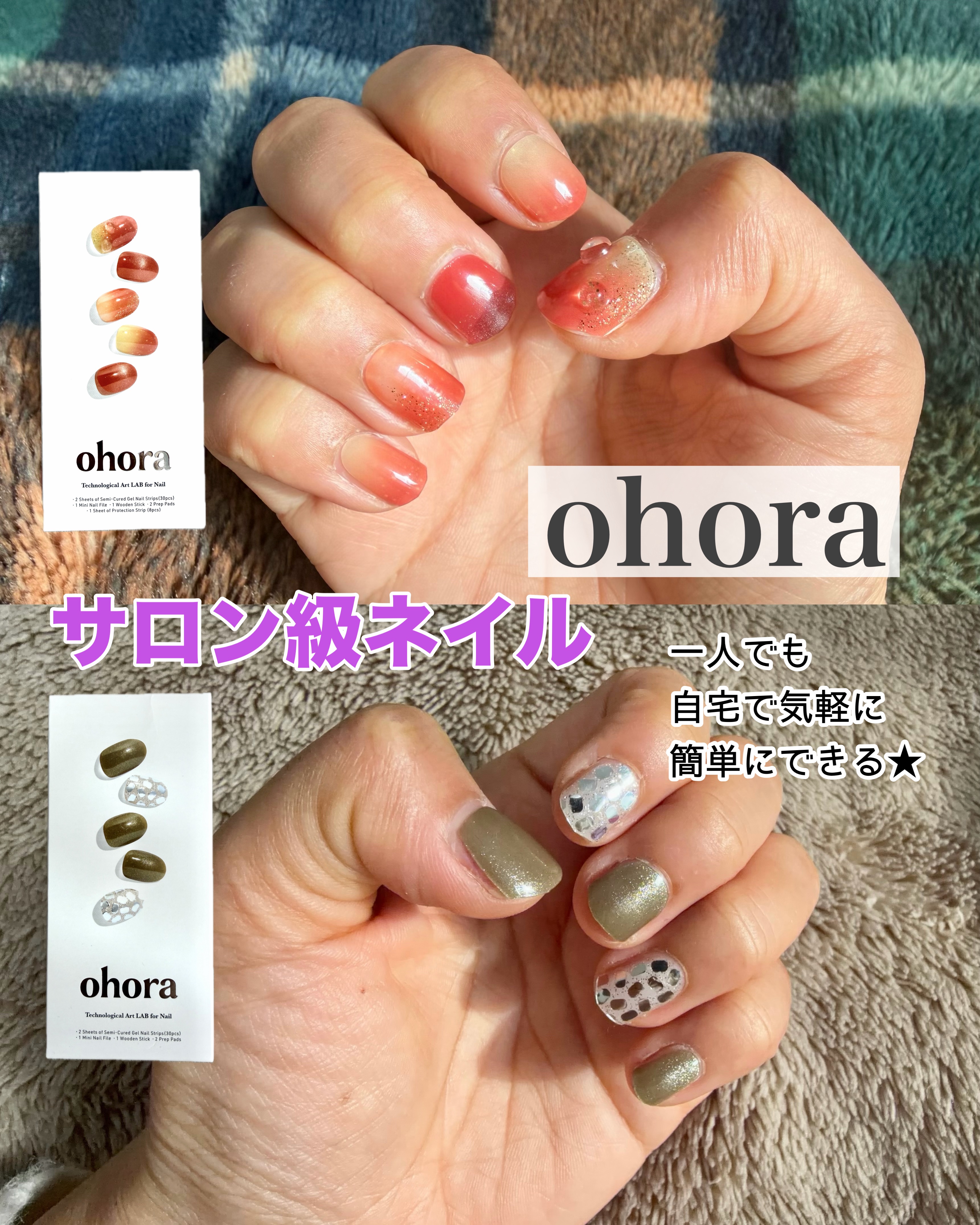 ✼••••✼ohoraネイルシール✼••••✼貼って固めるだけで完成!のオホーラのネイルシール✨一人でも自宅で気軽に簡単にできて、オフも簡単にできちゃう!サロンに行かなくても簡単に可愛いジェルネイルが出来て大満足🩷ハンドは平均約2週間(長い方...