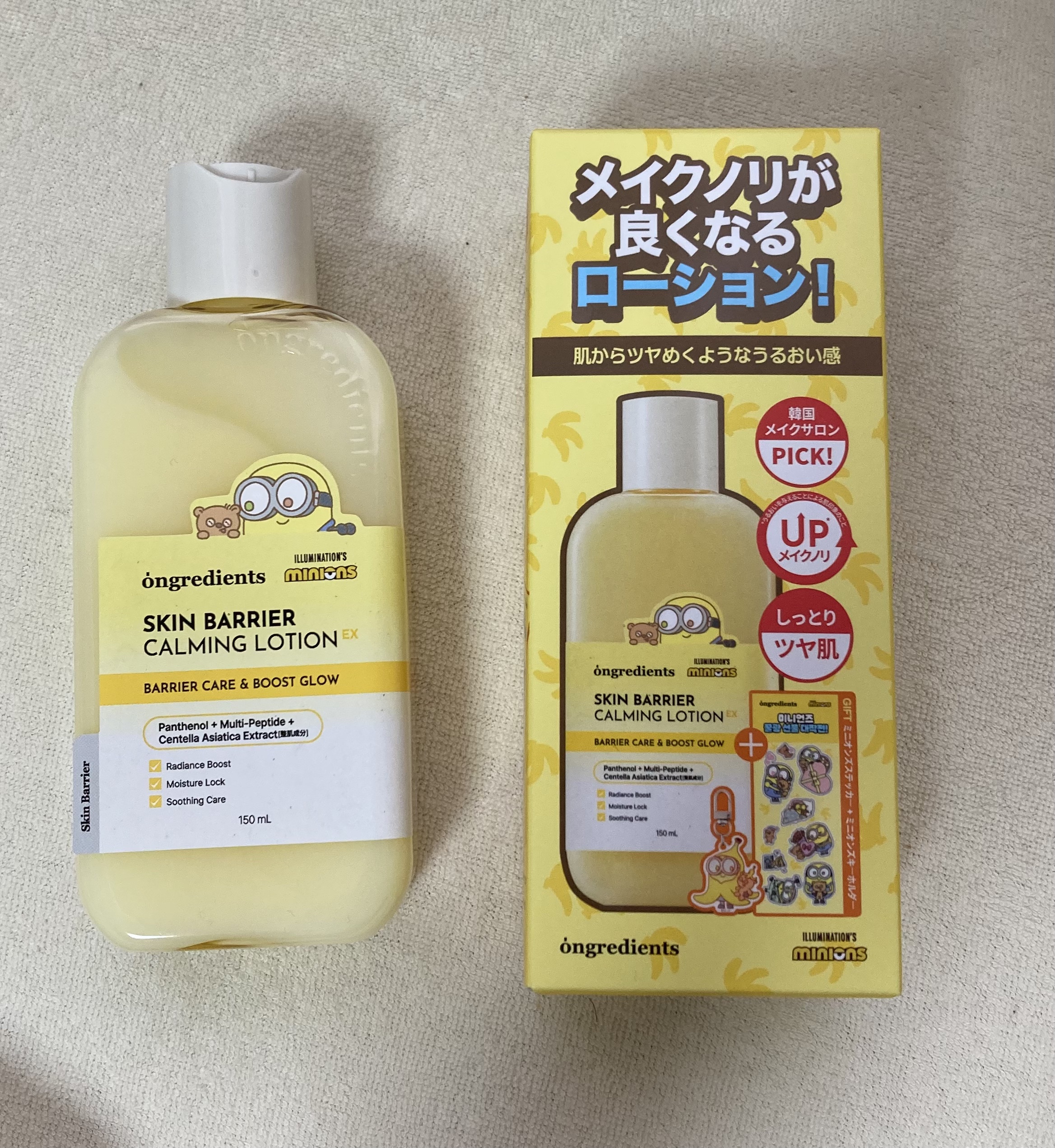 - 「ongredients(オングリディエンツ)」が、ついに日本のオフライン店舗に登場! <2025年8月30日(土)(※1)より全国のプラザ、ドン・キホーテ(※2)にて先行販売を開始> メイクノリが上がるツヤ肌乳液 【主要成分】 ・オリオソームTECA(※3) ツボクサ由来成分(※3)をオリオソーム技術で包み込み、肌に馴染みやすい設計にすることで、外的刺激を受けた肌を落ち着かせます。 ・複合ペプチド(※4)&ヴィーガンコラーゲン(※5) 肌コンディションを整え、内側から輝くようなツヤ肌を演出します。 ・パンテノール(※6) 角質層まで浸透(※7)し、うるおいのある肌印象へと導きます。 【こんな方におすすめ】 ・ツヤ感のあるメイクを好む方 ・水分感のあるツヤ肌を目指したい方 ・外的刺激によりゆらいだ肌を労わりたい方 (※1)店頭開始日となり、購入可能日は各店舗により異なります。 (※2)一部店舗を除きます。 (※3)アシアチコシド,アシアチン酸,マデカシン酸(整肌成分) (※4)ヘキサペプチド-11,オリゴペプチド-1,オリゴペプチド-2,オリゴペプチド-3,アセチルヘキサペプチド-8,カラスムギペプチド,トリペプチド-1銅,パルミトイルヘキサペプチド-12,パルミトイルペンタペプチド-4,パルミトイルテトラペプチド-7,パルミトイルトリペプチド-1,トリペプチド-1 (※5)ハイビスカスコラーゲンから抽出した加水分解コラーゲン(整肌成分) (※6)保湿成分 (※7)角質層まで