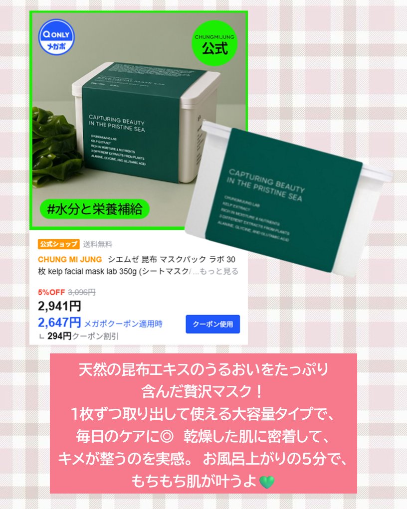 MEDICUBE PDRNピンクビタコーティングマスク | 275円〜 |